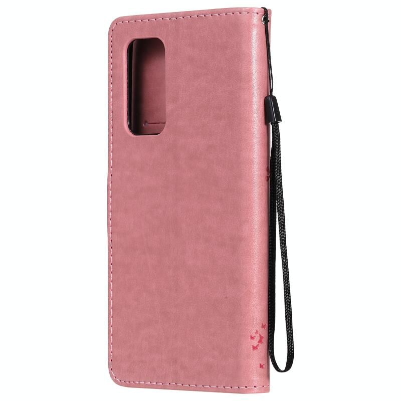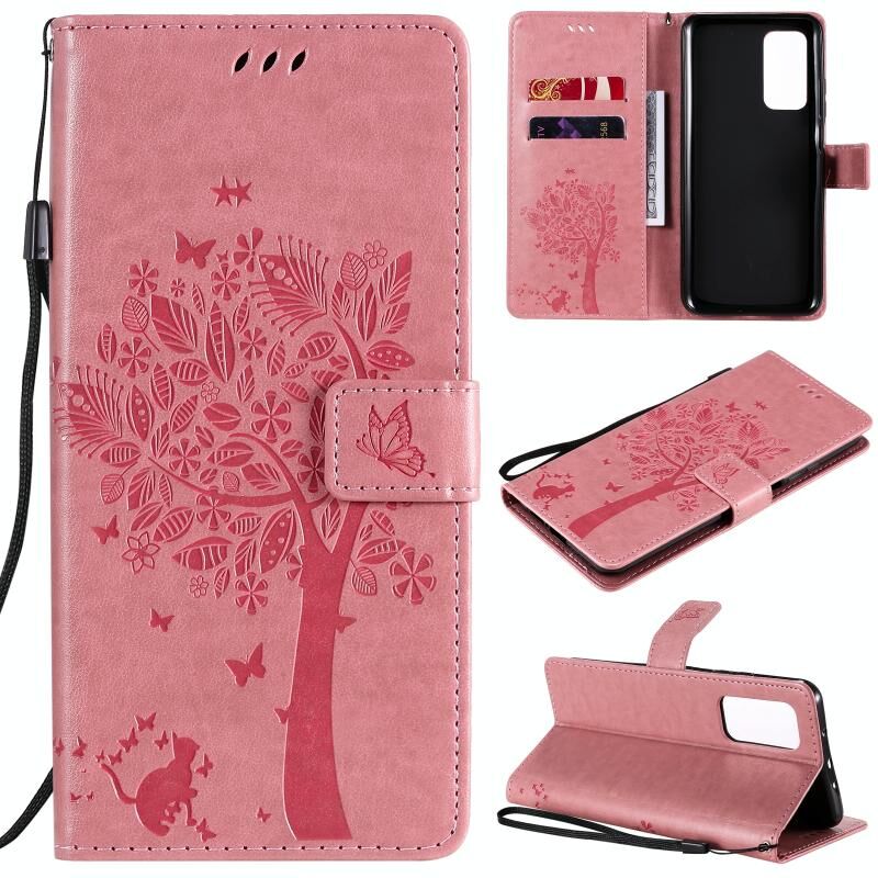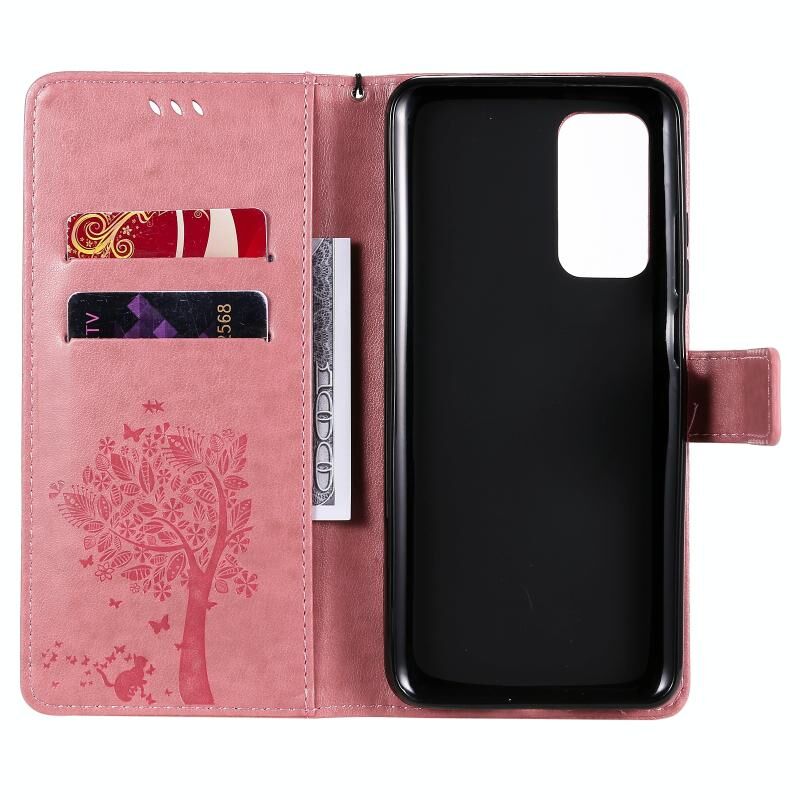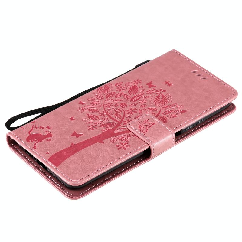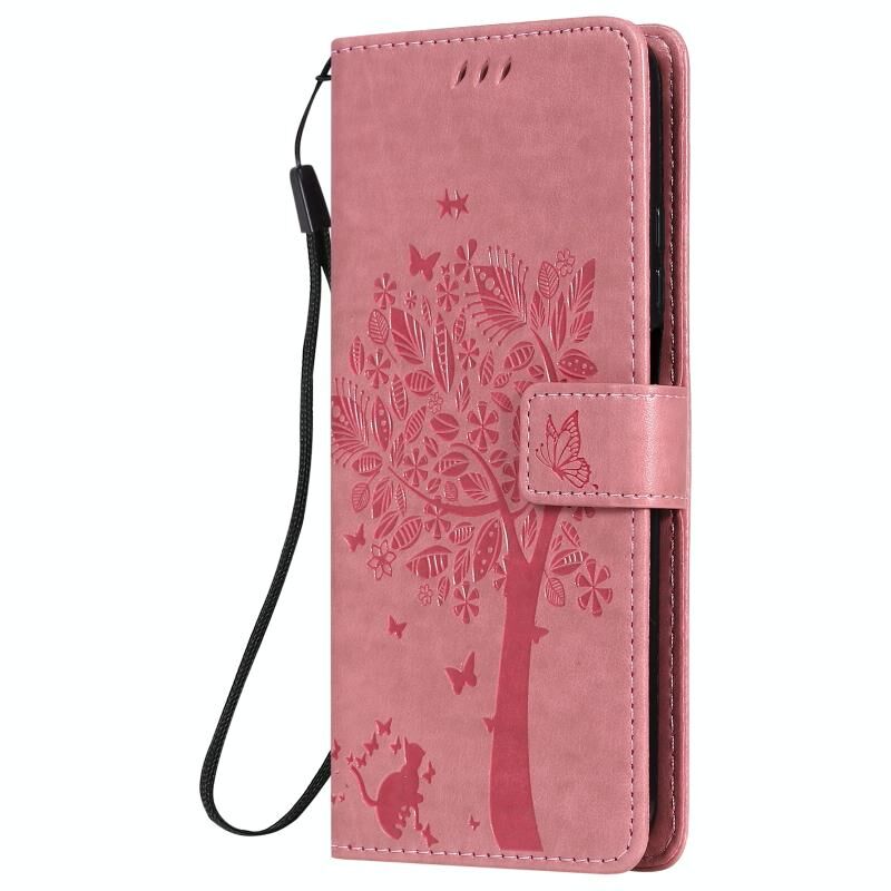 Για Xiaomi Mi 10T / 10T Pro Θήκη Δερμάτινη PU με Οριζόντιο Άνοιγμα, με σχέδιο Δέντρου & Γάτας, με εκτύπωση υπό πίεση, με βάση στήριξης & Θήκες Καρτών & Πορτοφόλι & Λουρί (ρόζ)