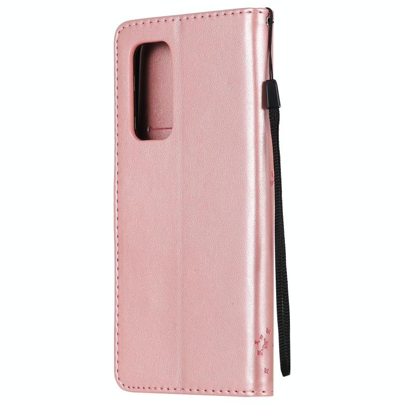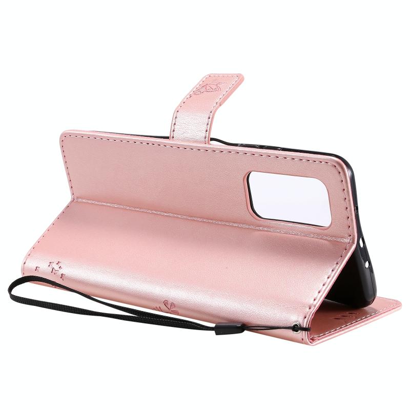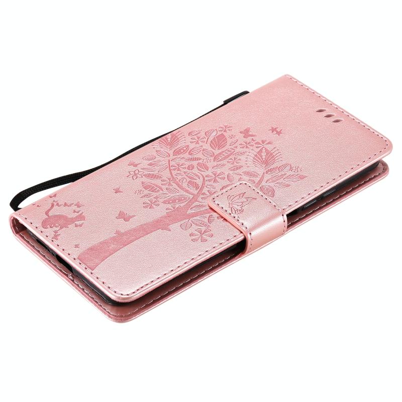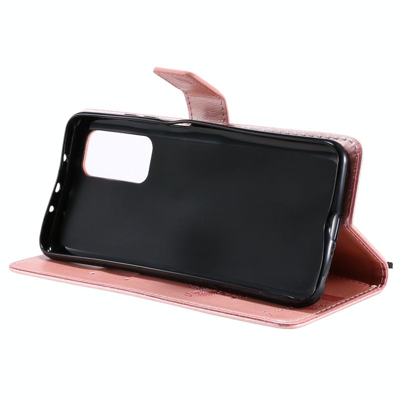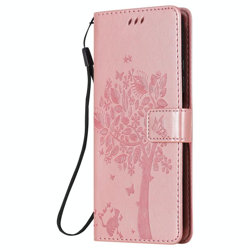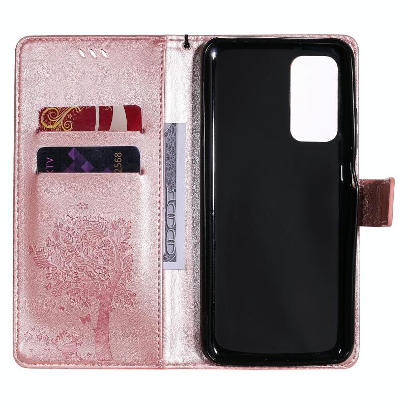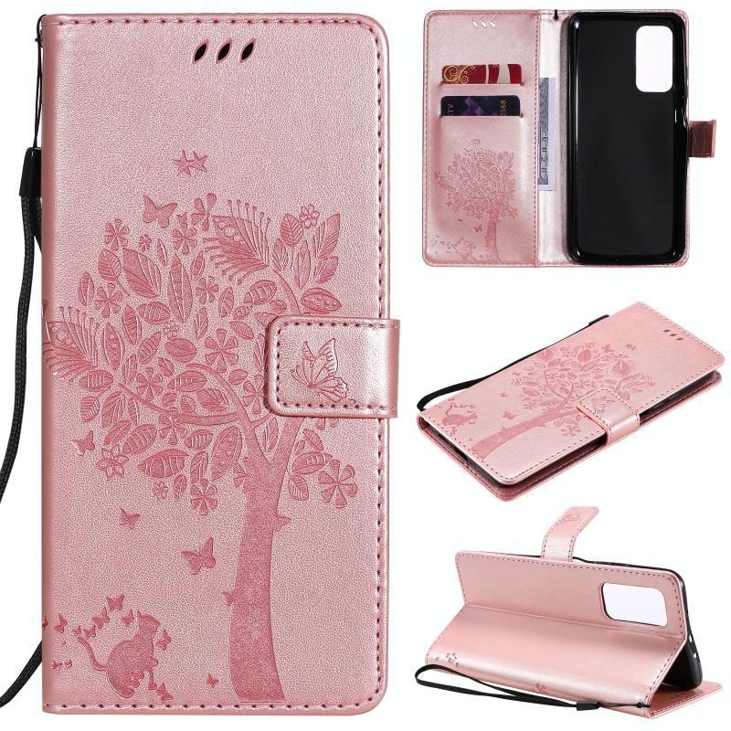 For Xiaomi Mi 10T / 10T Pro Tree & Cat Pattern Pressed Printing Horizontal Flip PU Leather Case with Holder & Card Slots & Wallet & Lanyard(Rose Gold)
