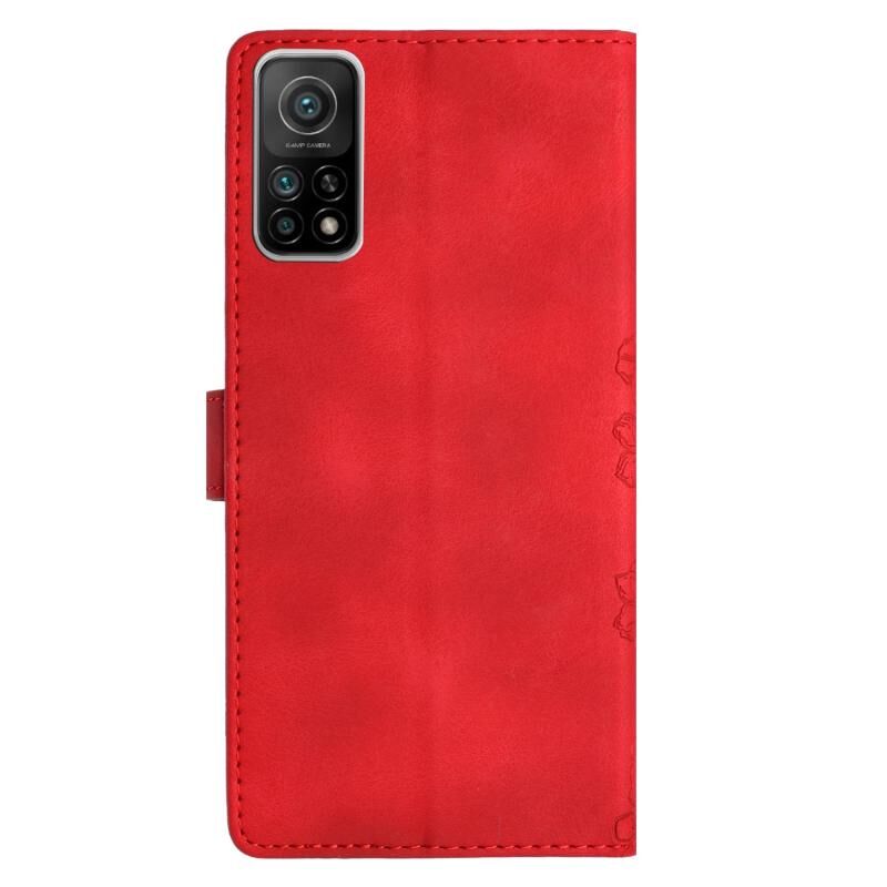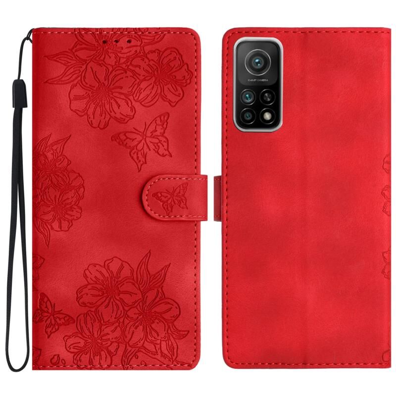 Θήκη τηλεφώνου Xiaomi Mi 10T 5G / 10T Pro 5G με ανάγλυφο PU υφή δέρματος, σχέδιο κερασιού και πεταλούδας (Κόκκινο)