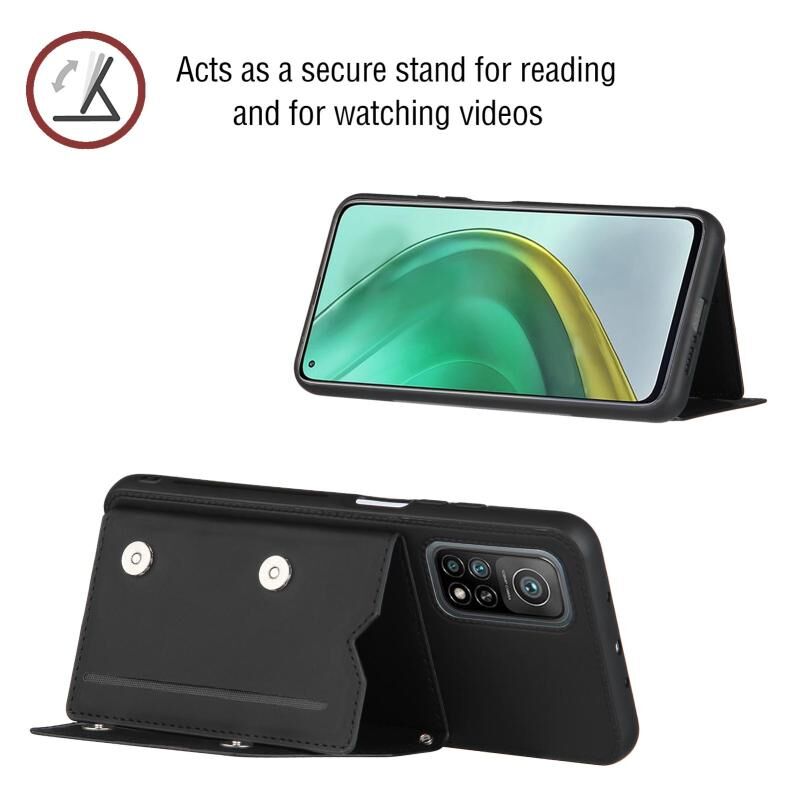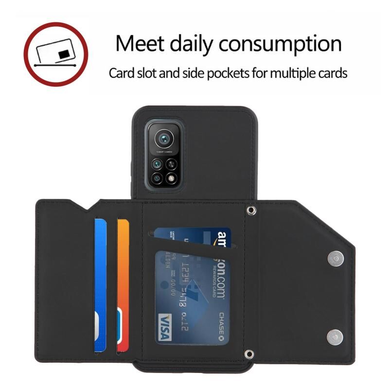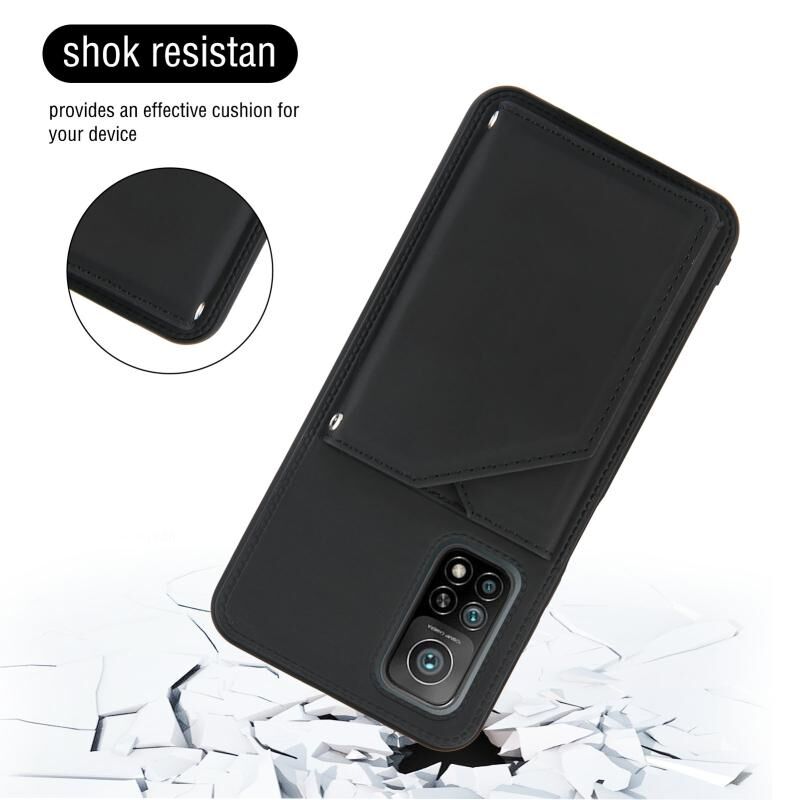 Για το Xiaomi Mi 10T 5G / 10T Pro 5G Skin Feel PU + TPU + PC Back Cover Shockproof Case με υποδοχές καρτών & Holder & Photo Frame (Μαύρο)