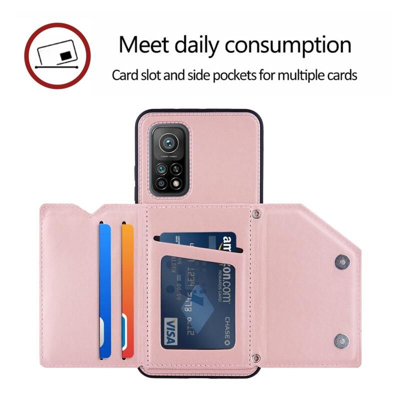 Για το Xiaomi Mi 10T 5G / 10T Pro 5G Skin Feel PU + TPU + PC Back Cover Shockproof Case με υποδοχές καρτών & Holder & Photo Frame (Rose Gold)