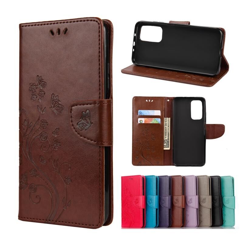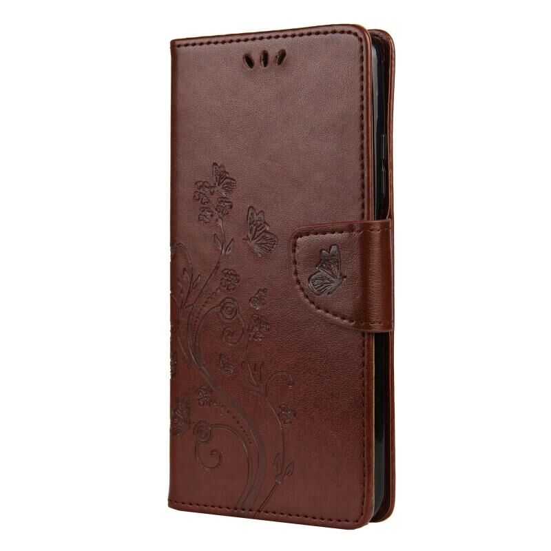 Για Xiaomi Mi 10T 5G Πεταλούδες Αγάπη Λουλούδια Embossing Οριζόντια Δερμάτινη Θήκη με Στήριξη & Θήκες Καρτών & Πορτοφόλι (Καφέ)