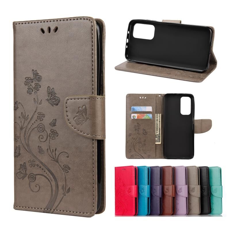 Για Xiaomi Mi 10T 5G Πεταλούδες Αγάπη Λουλούδια Embossing Οριζόντια Δερμάτινη Θήκη με Στήριξη & Θήκες Καρτών & Πορτοφόλι (Γκρι)
