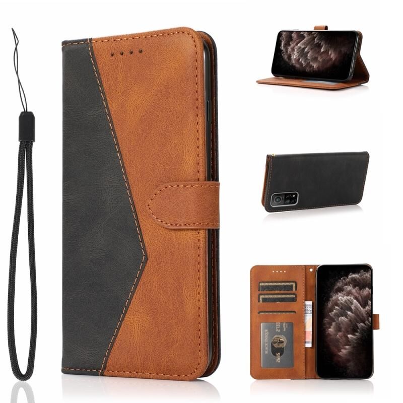 Για Xiaomi Mi 10T 5G Διπλό χρώμα ραφή δερμάτινη θήκη τηλεφώνου (Μαύρο καφέ)