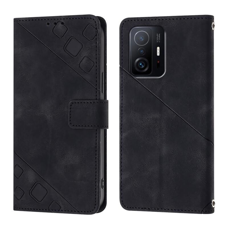 Για Xiaomi Mi 10T 5G / Mi 10T Pro 5G Skin Feel ανάγλυφη δερμάτινη θήκη τηλεφώνου (Μαύρο)