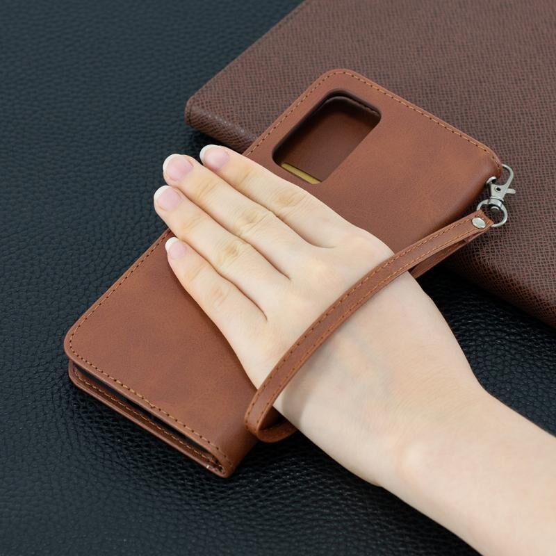 Για Xiaomi Mi 10T 5G Retro Lambskin Texture Pure Color Horizontal Flip PU Leather Case με θήκη & υποδοχές καρτών & πορτοφόλι & κορδόνι (Καφέ)