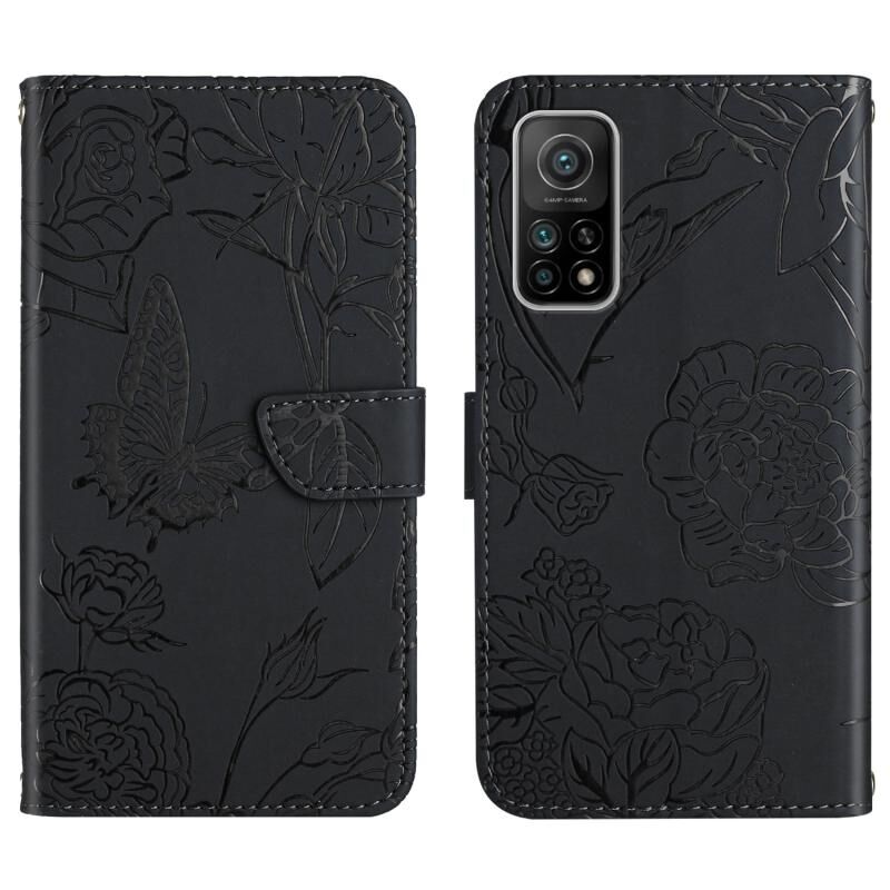 Θήκη τηλεφώνου από δέρμα με ανάγλυφο σχέδιο πεταλούδας και παιώνιας για Xiaomi Mi 10T 5G (Κόκκινο)