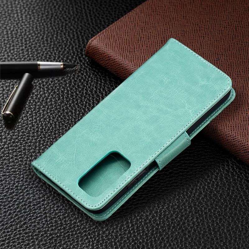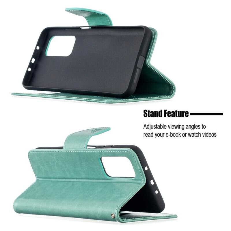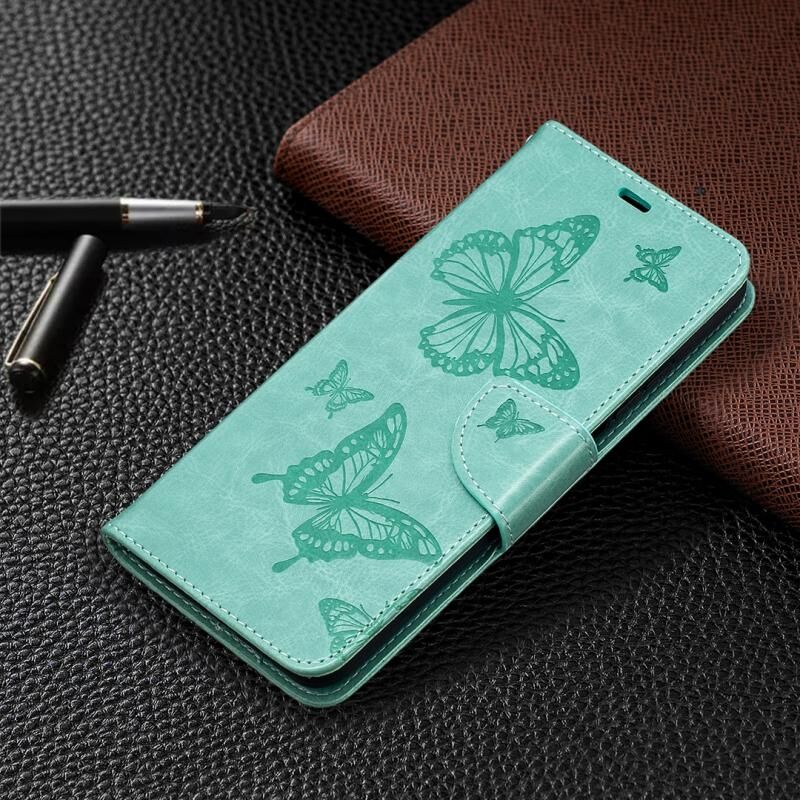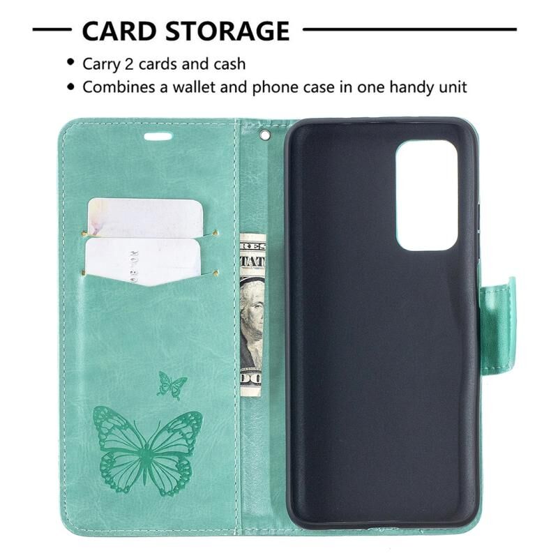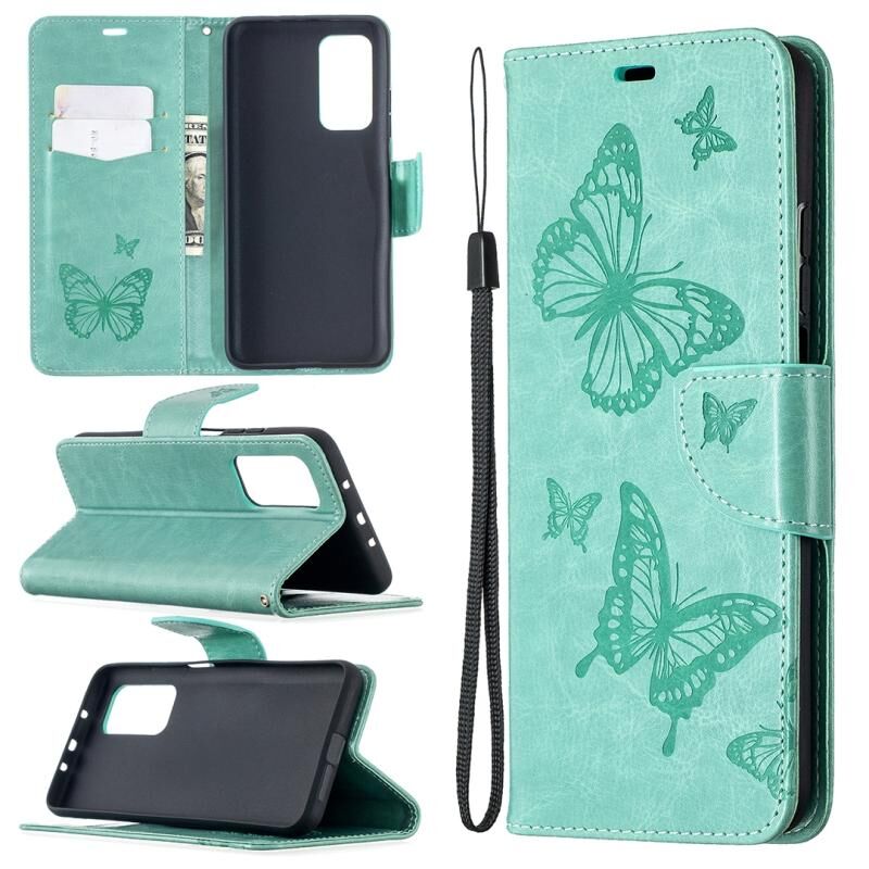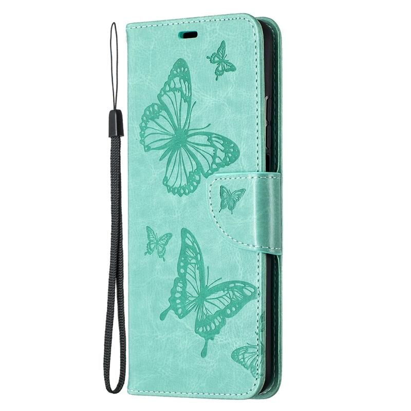 Για Xiaomi Mi 10T 5G Δερμάτινη θήκη οριζόντιας αναδίπλωσης με ανάγλυφο σχέδιο δύο πεταλούδων, με βάση στήριξης, θήκη για κάρτες, πορτοφόλι & λουρί (πράσινο)