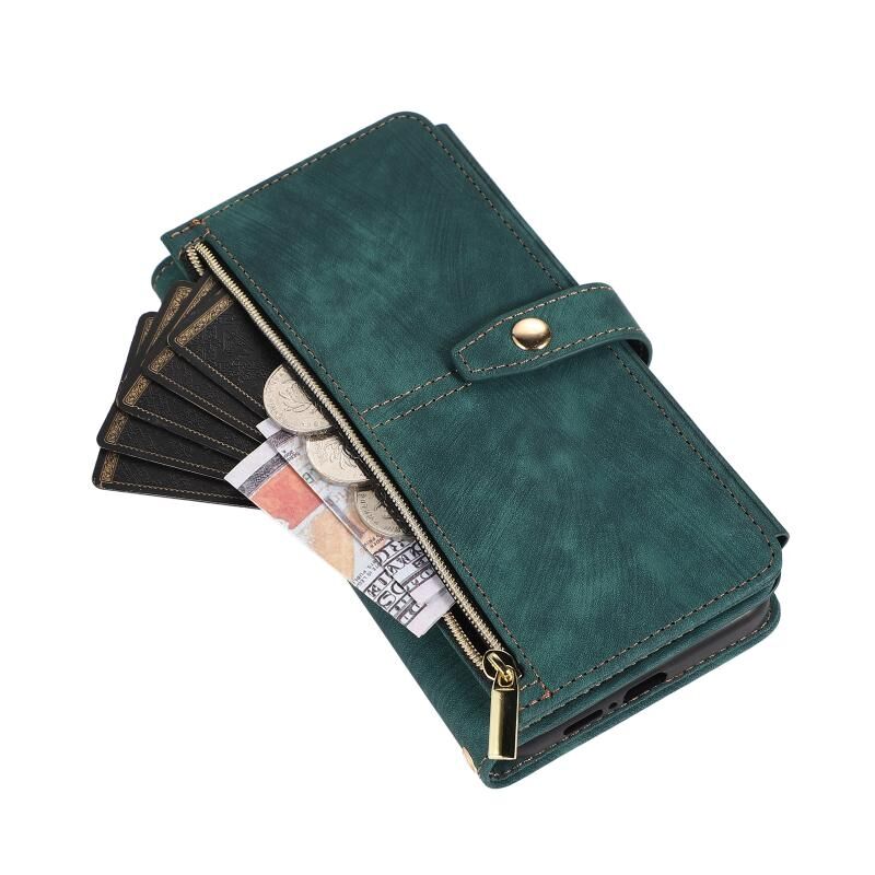 Για Xiaomi Mi 10T Dream 9-κάρτα πορτοφόλι φερμουάρ τσάντα δερμάτινη θήκη τηλεφώνου (πράσινο)