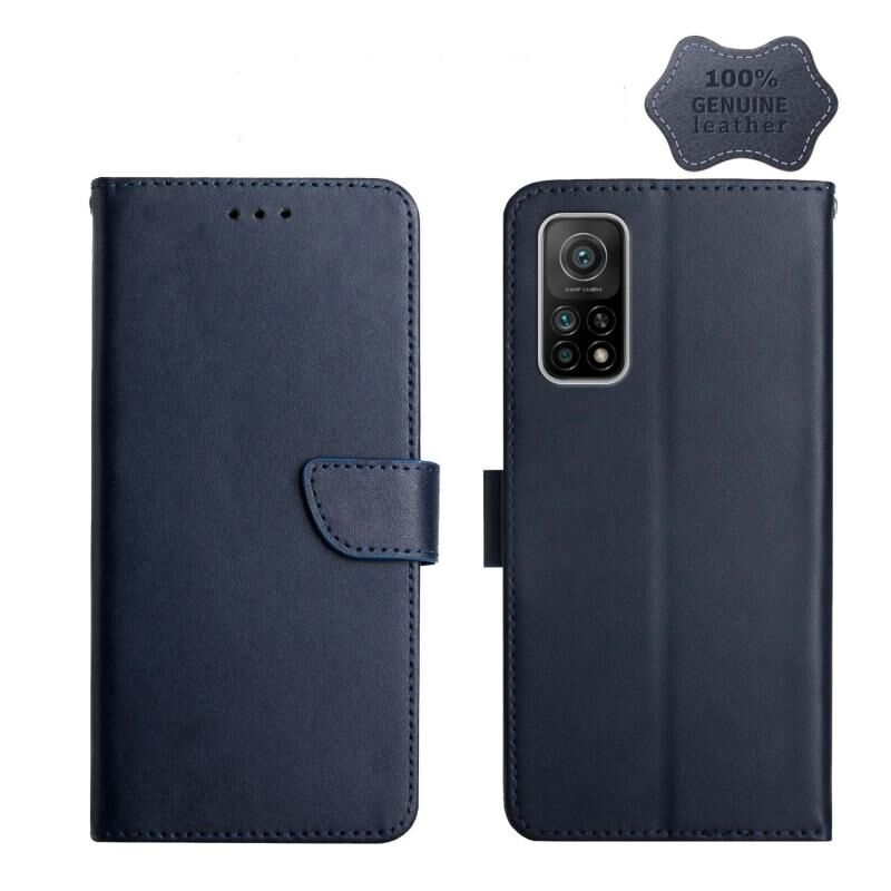 Θήκη τηλεφώνου Xiaomi Mi 10T από γνήσιο δέρμα, οριζόντια, με μαγνητικό κλείσιμο και προστασία από δακτυλικά αποτυπώματα (Μπλε)