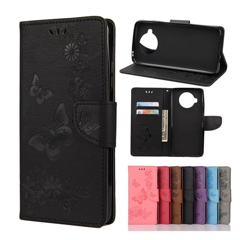 Για Xiaomi Mi 10T Lite 5G, Θήκη Δέρματος Οριζόντιας Αναδίπλωσης με ανάγλυφα σχέδια πεταλούδων, με βάση στήριξης & Θήκες Καρτών & Πορτοφόλι (Μαύρο)