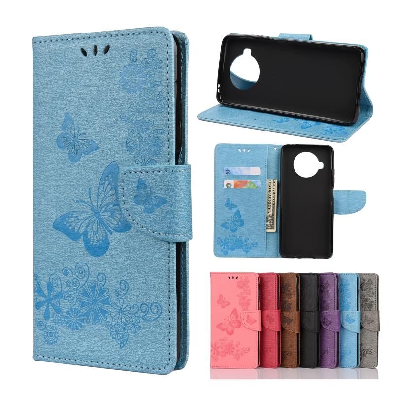 Για Xiaomi Mi 10T Lite 5G, Θήκη Δέρματος Οριζόντιας Αναδίπλωσης με ανάγλυφα σχέδια πεταλούδων, με βάση στήριξης & Θήκες Καρτών & Πορτοφόλι (Καφέ)