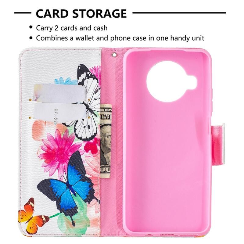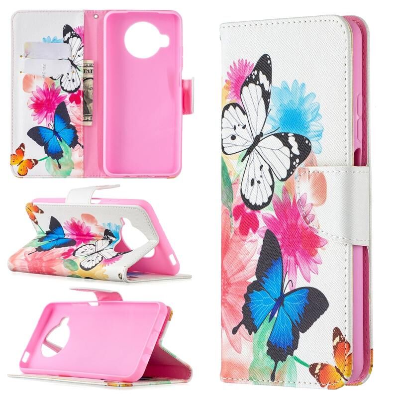 Θήκη δέρματος οριζόντιας αναδίπλωσης με σχέδιο ζωγραφικής και χρώματα για Xiaomi Mi 10T Lite 5G, με βάση στήριξης & υποδοχές καρτών & πορτοφόλι (Δύο Πεταλούδες)