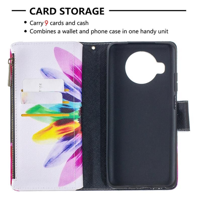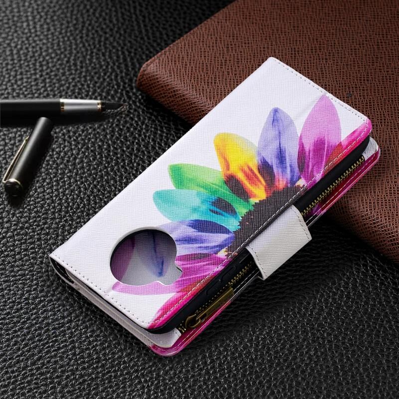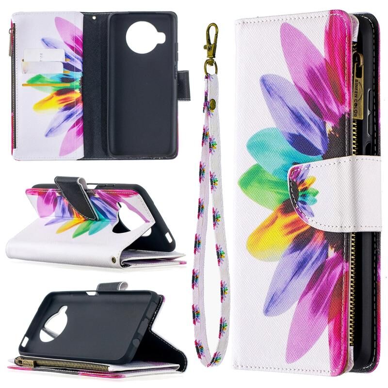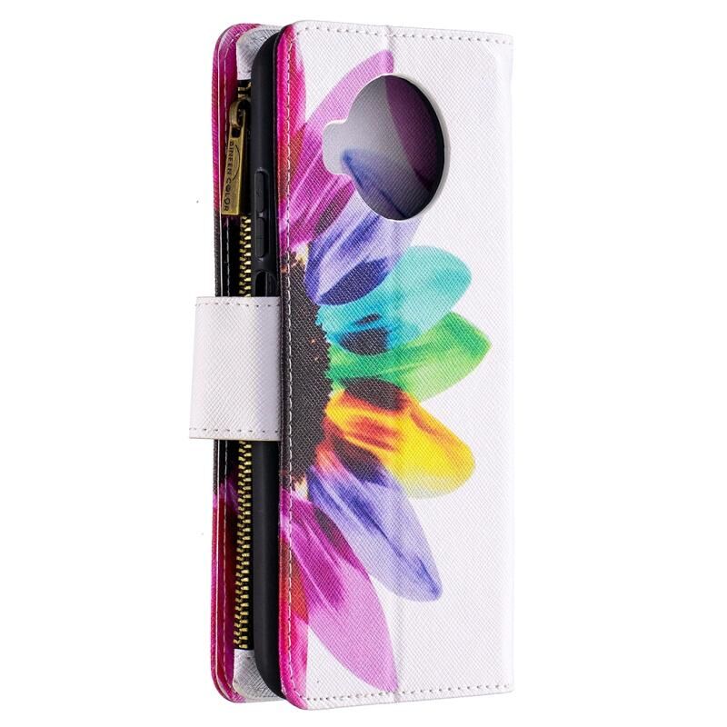 Θήκη δέρματος οριζόντιας αναδίπλωσης με φερμουάρ και σχέδιο πολύχρωμης ζωγραφικής για Xiaomi Mi 10T Lite 5G με βάση στήριξης & υποδοχές καρτών & πορτοφόλι (Ηλίανθος)
