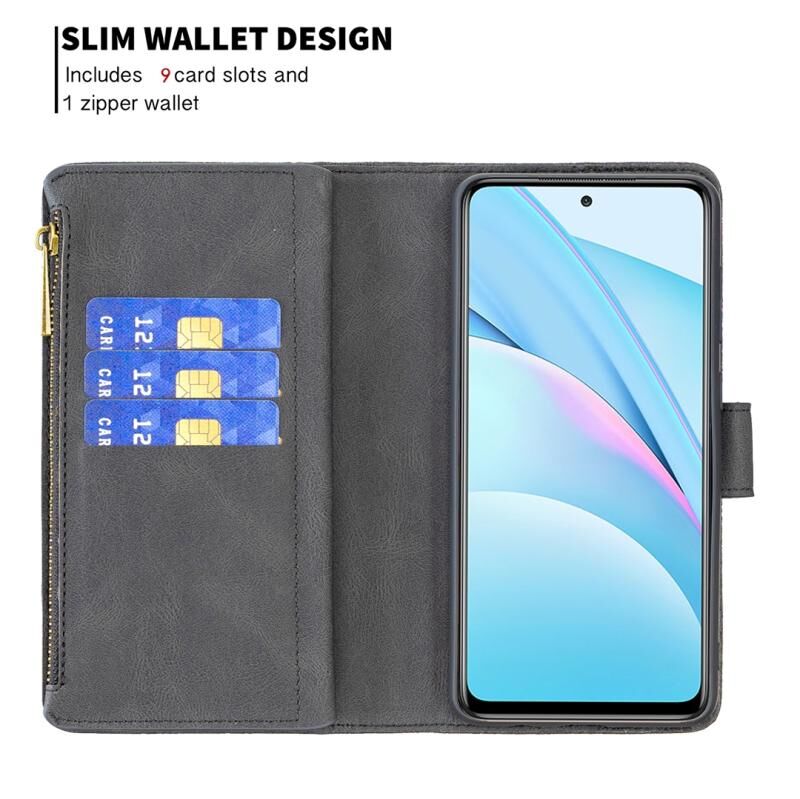 Για Xiaomi Mi 10T Lite 5G Πετώντας πεταλούδα ανάγλυφο μοτίβο φερμουάρ οριζόντια Flip δερμάτινη θήκη με κάτοχο & υποδοχές καρτών & πορτοφόλι (μαύρο)