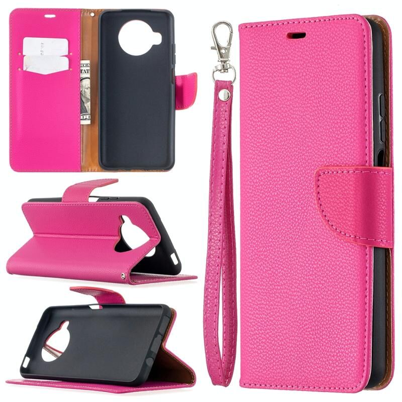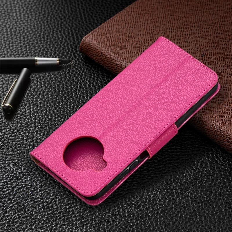 Θήκη δέρματος οριζόντιας αναδίπλωσης με υφή Litchi και καθαρό χρώμα για Xiaomi Mi 10T Lite 5G, με βάση στήριξης, θήκες καρτών, πορτοφόλι και κορδόνι (Κόκκινο Ρόδο). (Ροζέ κόκκινο)