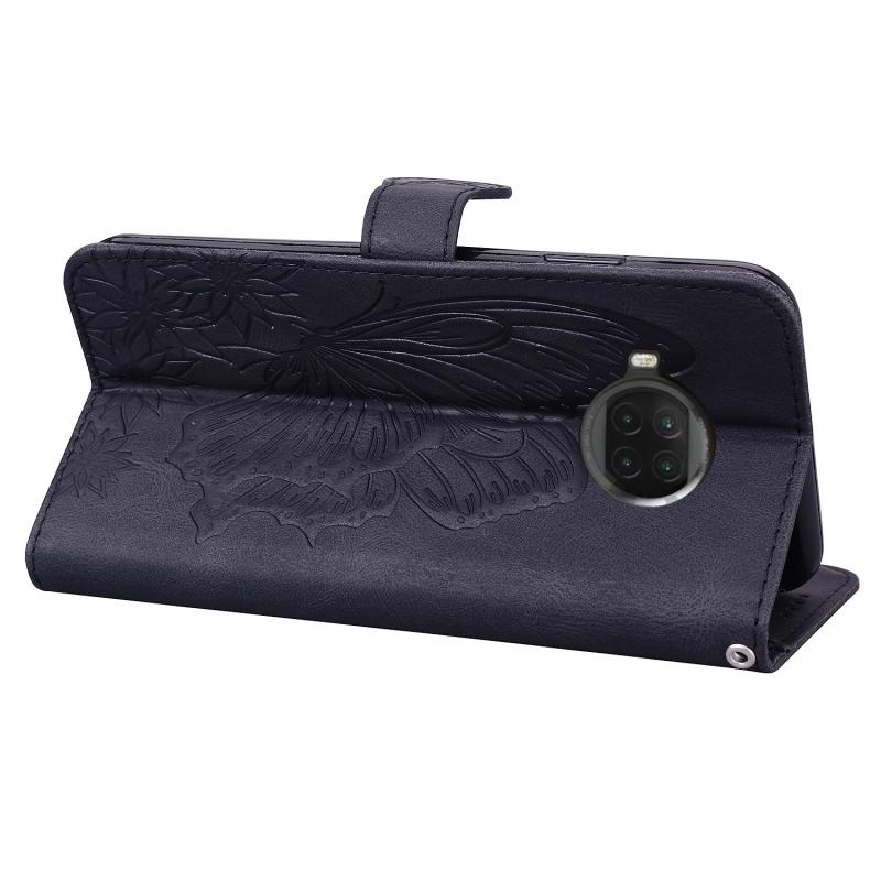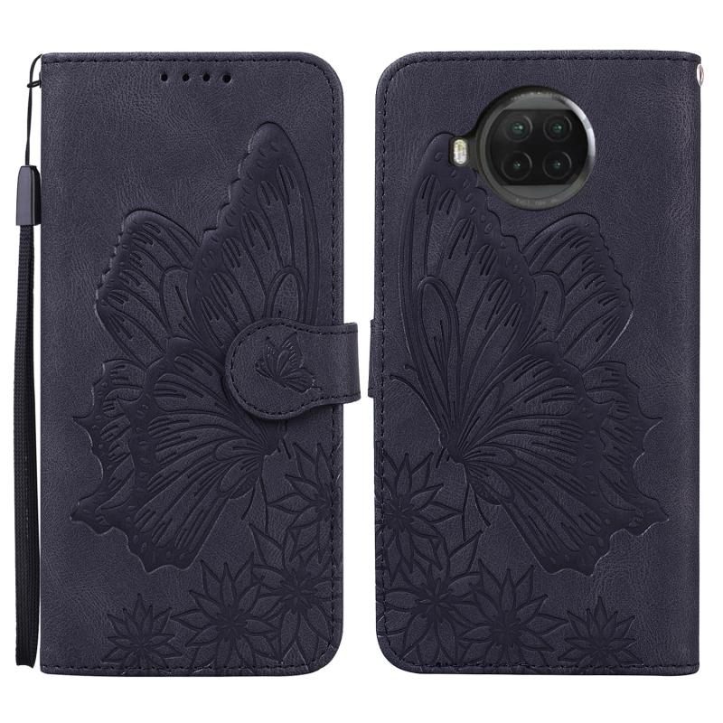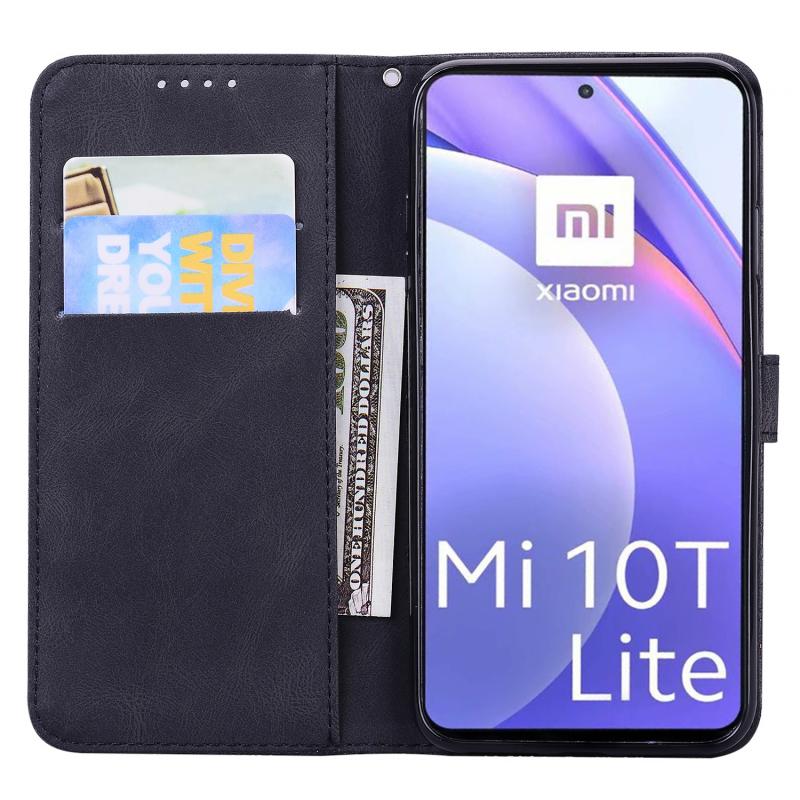 Για Xiaomi Mi 10T Lite 5G Θήκη Δέρματος Οριζόντιας Αναδίπλωσης με Υφή Retro, με ανάγλυφα σχέδια πεταλούδων, με βάση στήριξης & Θήκες Καρτών & Πορτοφόλι (Μαύρο)