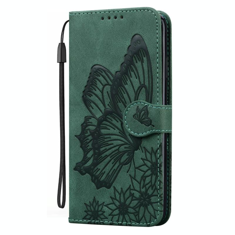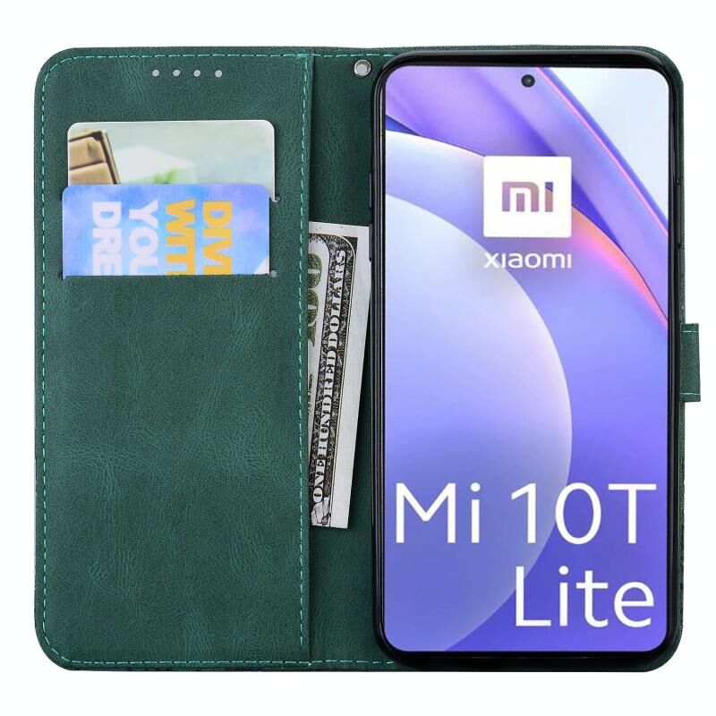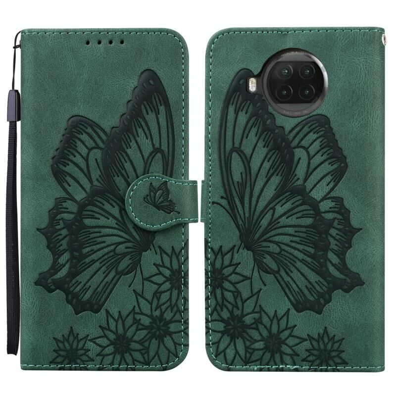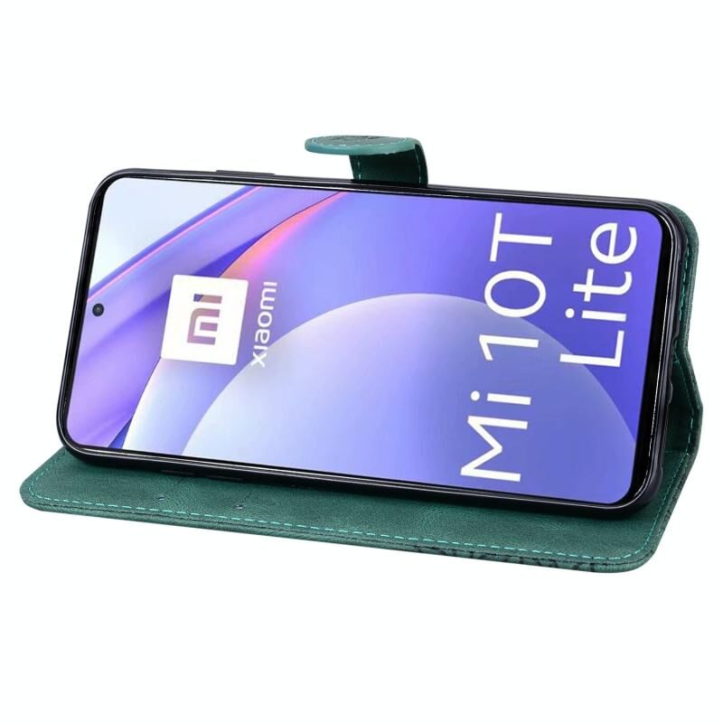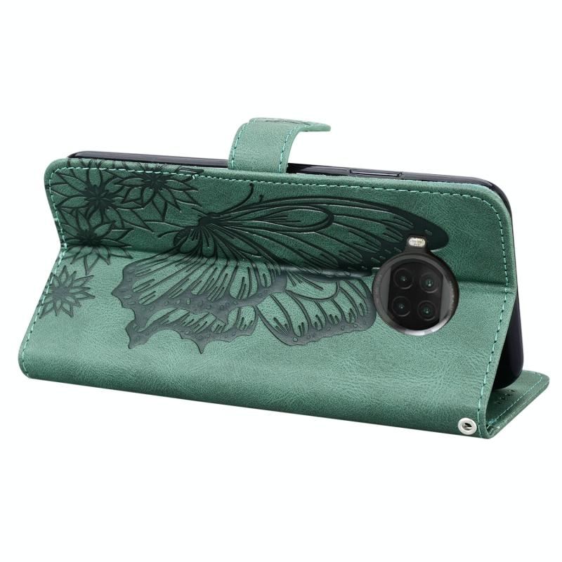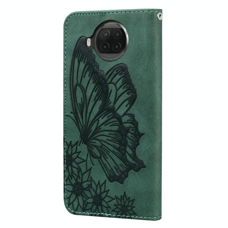 Για Xiaomi Mi 10T Lite 5G Θήκη Δέρματος Οριζόντιας Αναδίπλωσης με Υφή Retro, με ανάγλυφα σχέδια πεταλούδων, με βάση στήριξης & Θήκες Καρτών & Πορτοφόλι (πράσινο)