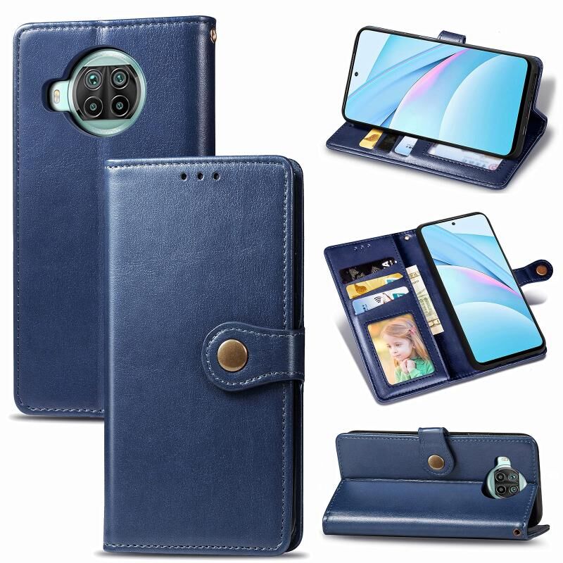 Για Xiaomi Mi 10T Lite 5G Ρετρό στερεό χρώμα δερμάτινη θήκη τηλεφώνου πόρπη με κορδόνι & πλαίσιο φωτογραφιών & υποδοχή κάρτας & πορτοφόλι & λειτουργία Stand (μπλε)