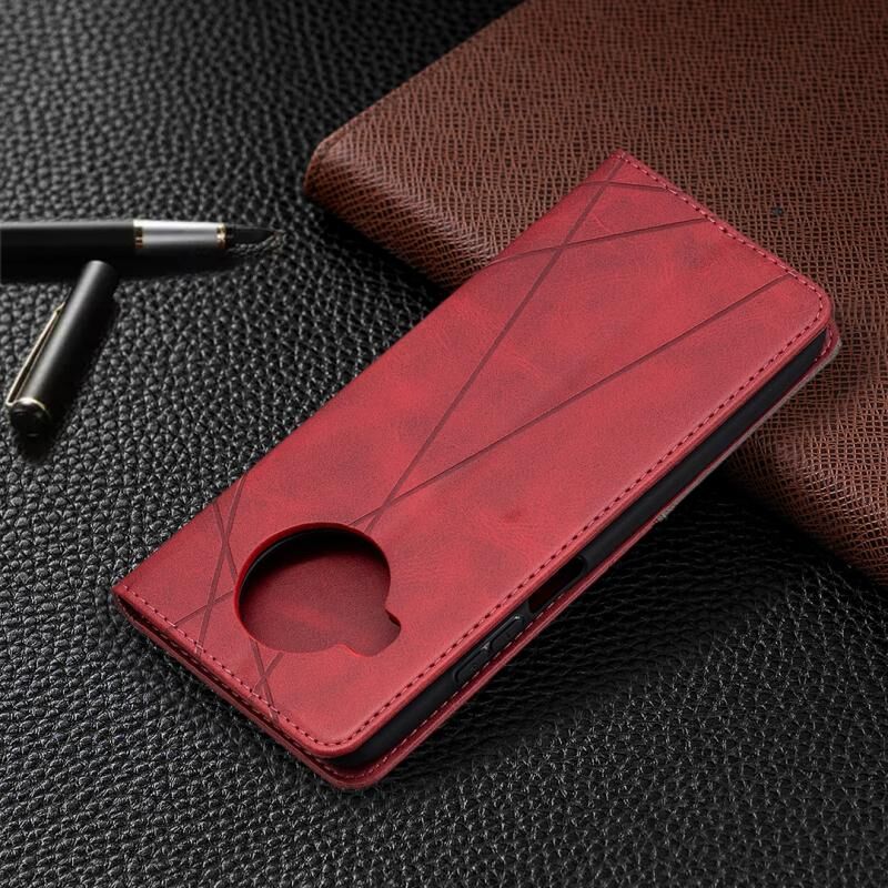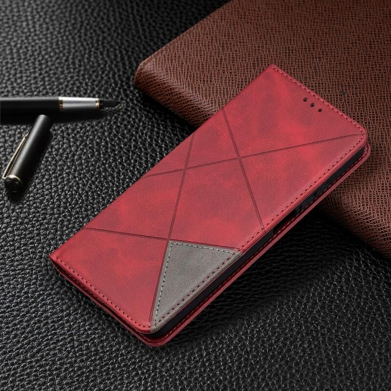 Θήκη δέρματος με μαγνητικό κλείσιμο, οριζόντια αναδιπλούμενη με υφή ρόμβου για Xiaomi Mi 10T Lite 5G, με βάση στήριξης & θήκες καρτών (Κόκκινο)