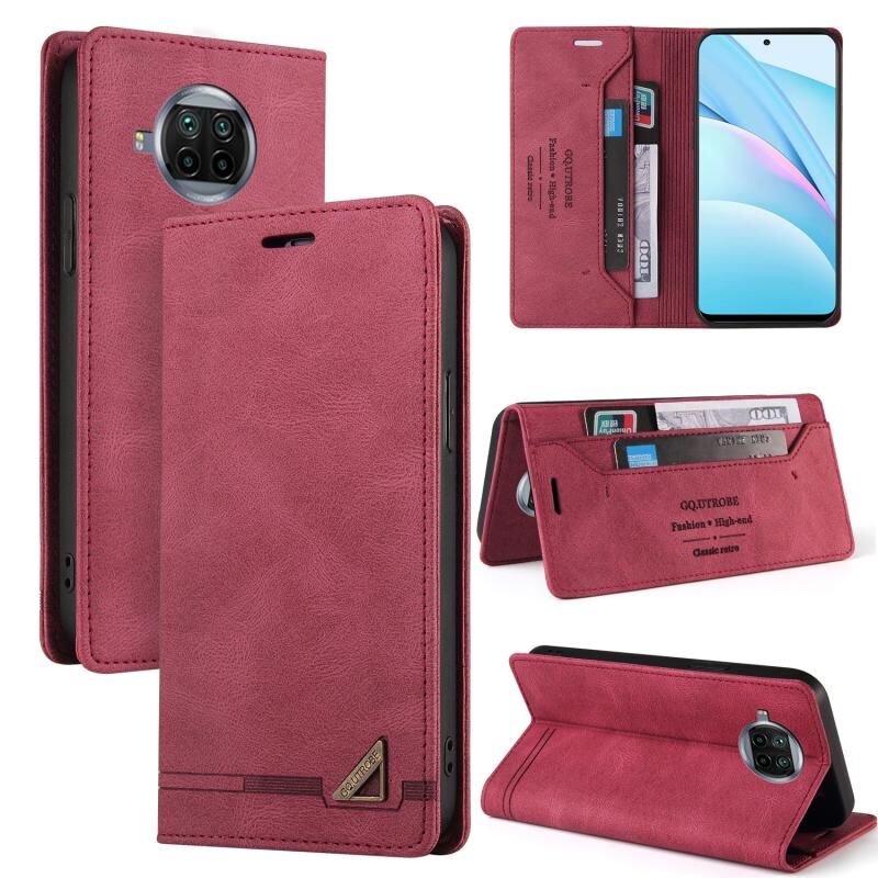 Για το Xiaomi Mi 10T Lite 5G Skin Feel Anti-theft Brush Horizontal Flip Leather Case με θήκη & υποδοχές καρτών & πορτοφόλι (κόκκινο κρασί)