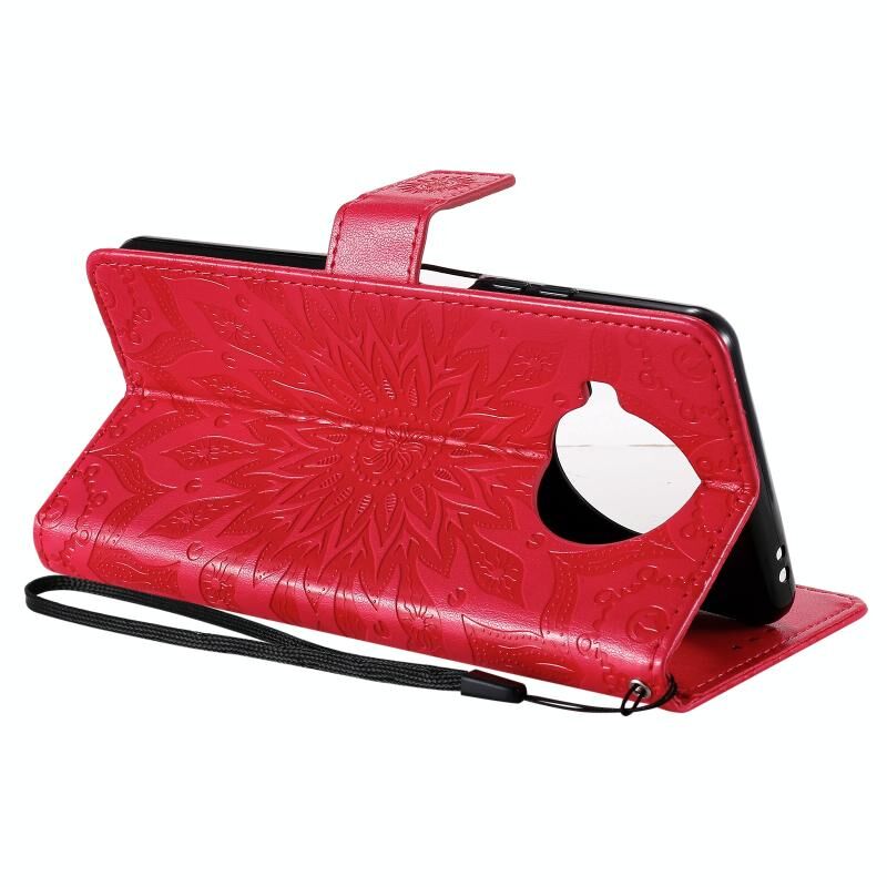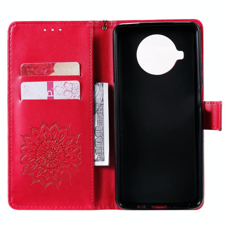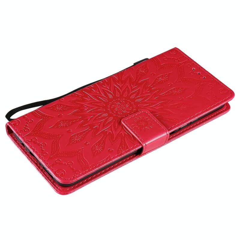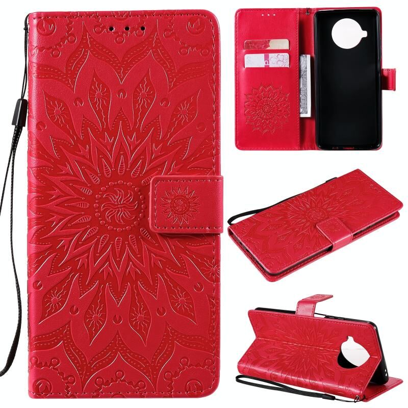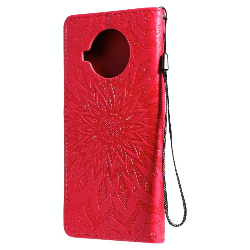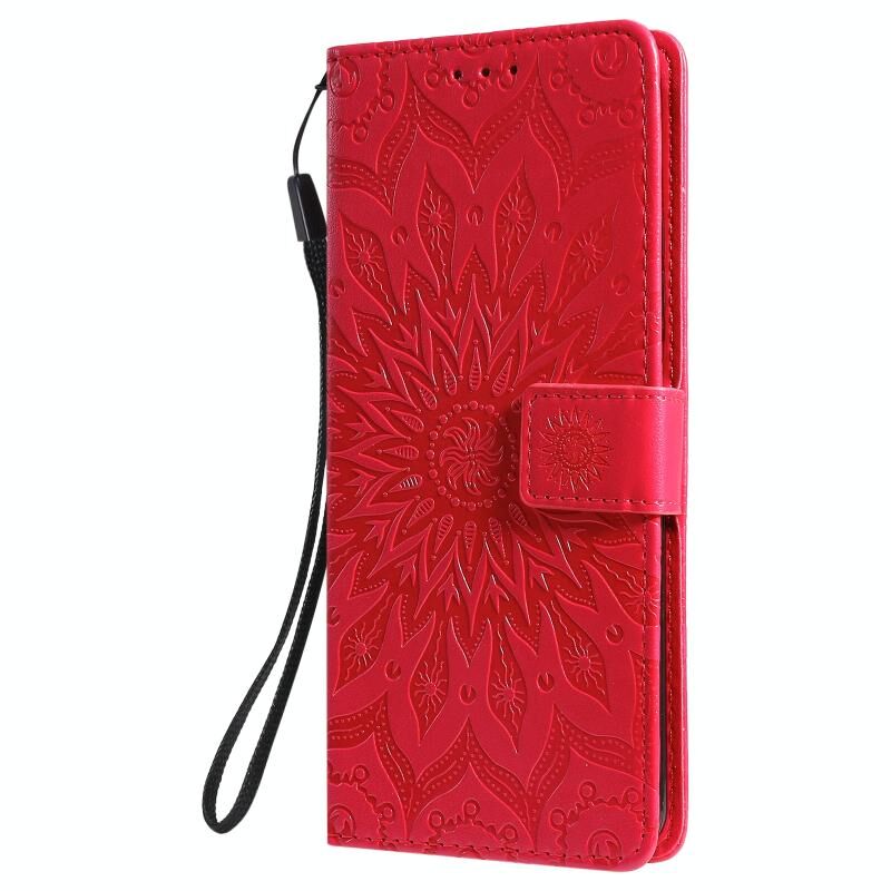 Για Xiaomi Mi 10T Lite 5G Θήκη Δέρματος Οριζόντιας Αναδίπλωσης με ανάγλυφο σχέδιο Ήλιου, Υποδοχή Κάρτας, Στήριξη, Πορτοφόλι & Λουρί (Κόκκινο)
