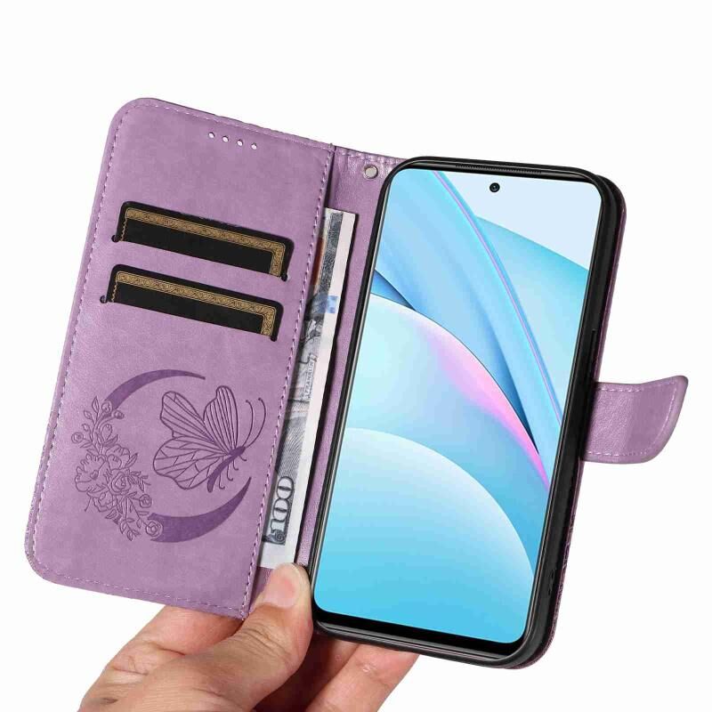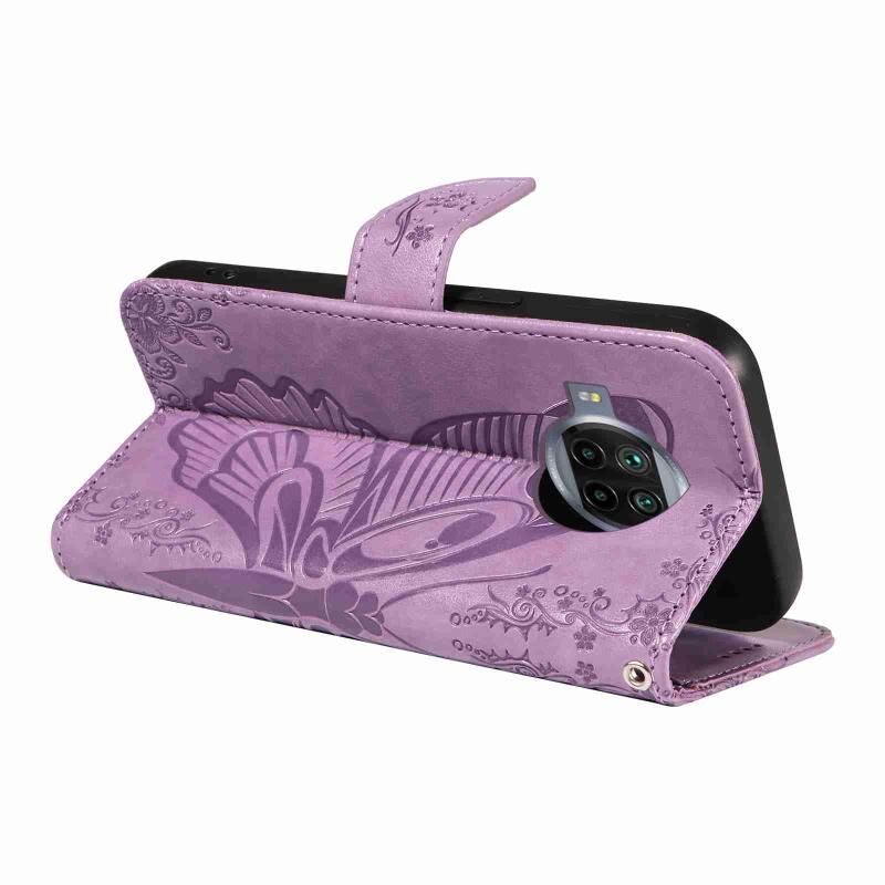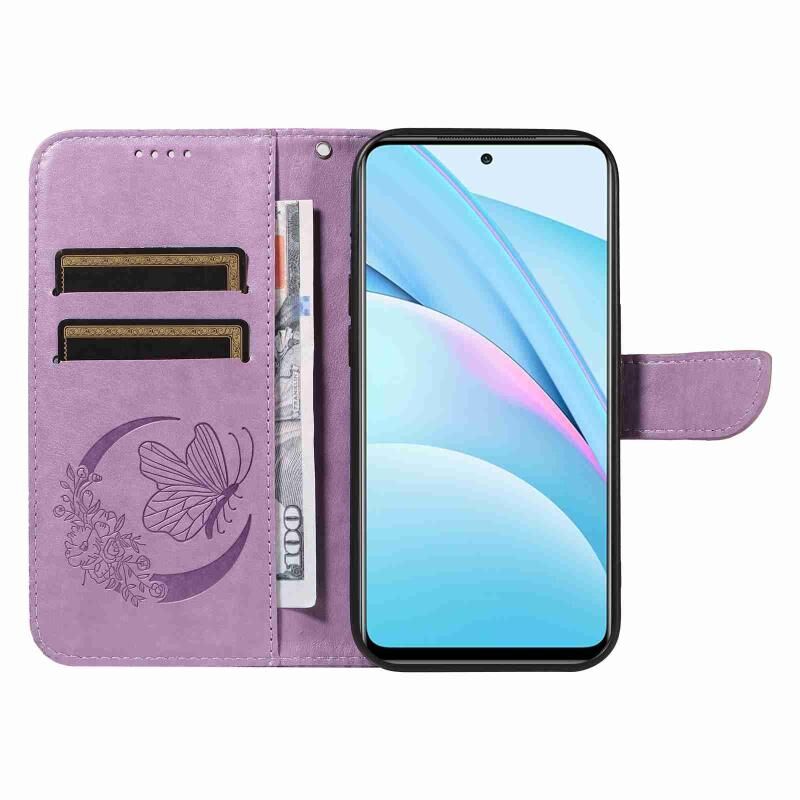 Θήκη τηλεφώνου δερμάτινη ανάγλυφη με σχέδιο πεταλούδας για Xiaomi Mi 10T Lite 5G (Μωβ)