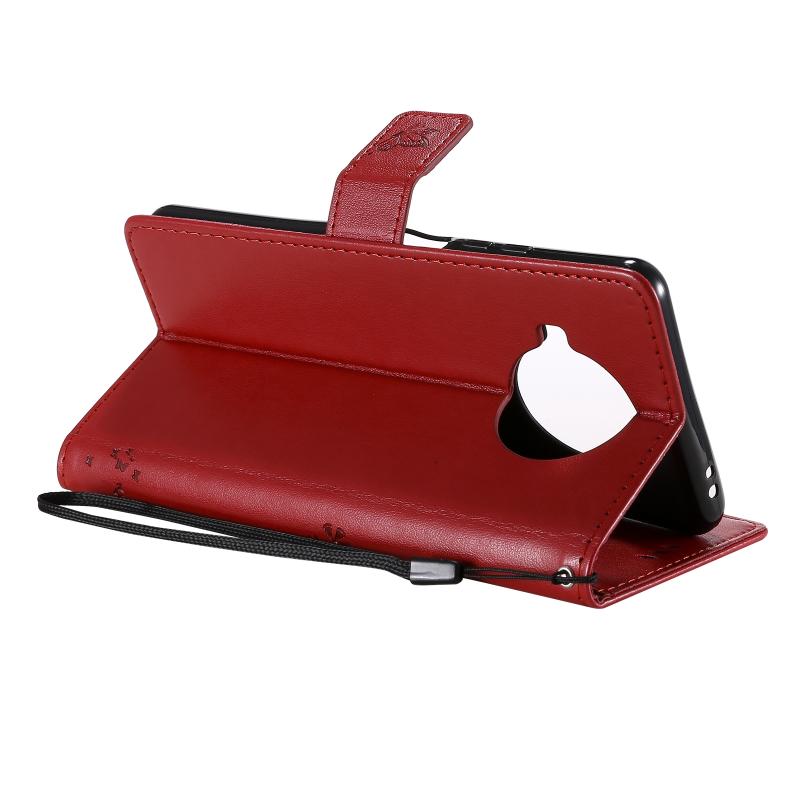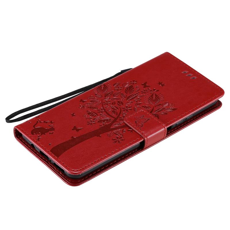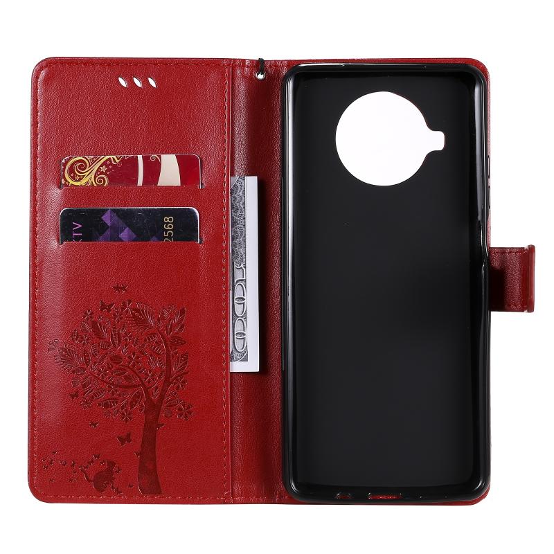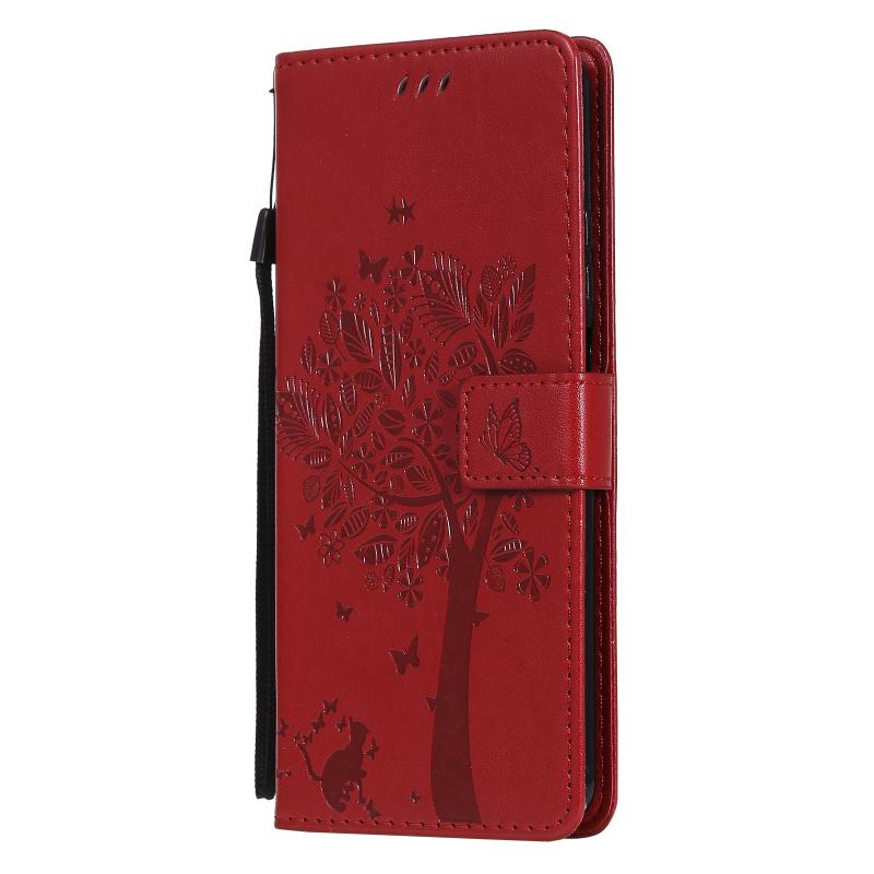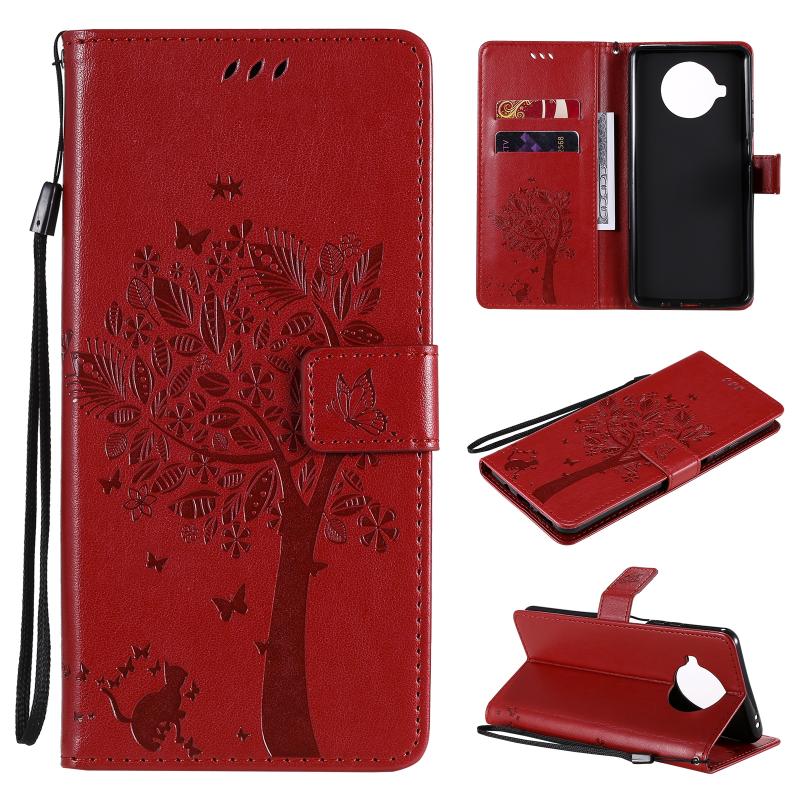 For Xiaomi Mi 10T Lite 5G Tree & Cat Pattern Pressed Printing Horizontal Flip PU Leather Case with Holder & Card Slots & Wallet & Lanyard(Red)