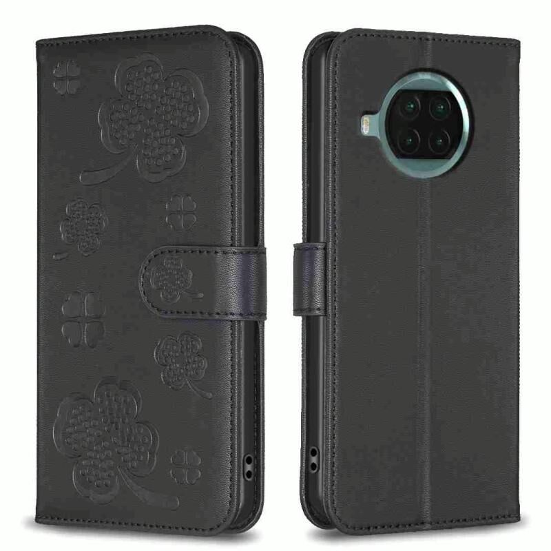Για Xiaomi Mi 10T Lite τετράφυλλο ανάγλυφη δερμάτινη θήκη τηλεφώνου (μαύρο)