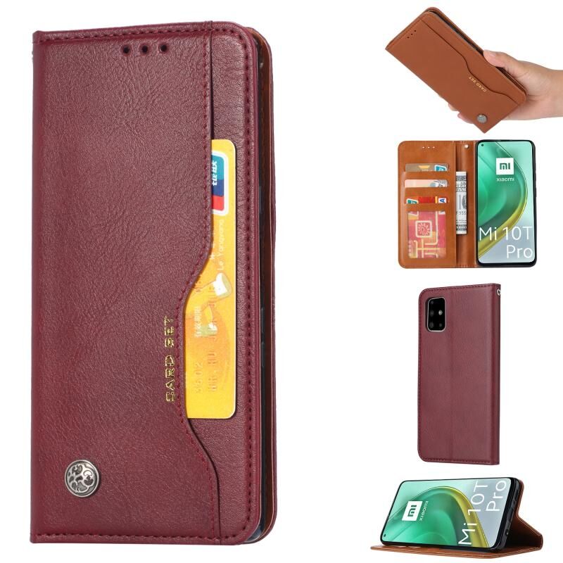 Για Xiaomi Mi 10T / Mi 10T Pro Knead Skin Texture Horizontal Flip Leather Case με πλαίσιο φωτογραφιών & θήκη & υποδοχές καρτών & πορτοφόλι (κόκκινο κρασί)