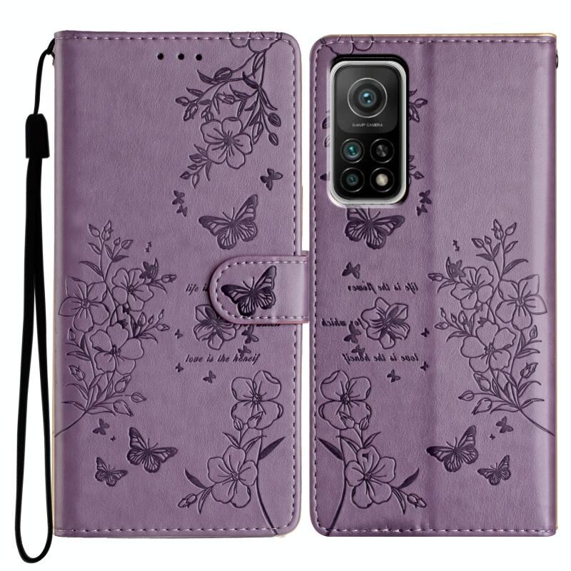 Θήκη τηλεφώνου από δέρμα με πεταλούδες και λουλούδια για Xiaomi Mi 10T Pro 5G (Χρυσό)