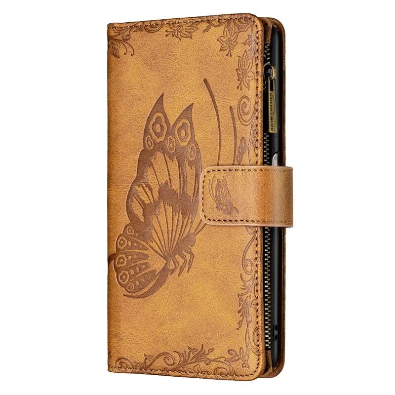Για Xiaomi Mi 10T Pro 5G Πετώντας πεταλούδα ανάγλυφο μοτίβο φερμουάρ οριζόντια Flip δερμάτινη θήκη με κάτοχο & υποδοχές καρτών & πορτοφόλι (Καφέ)