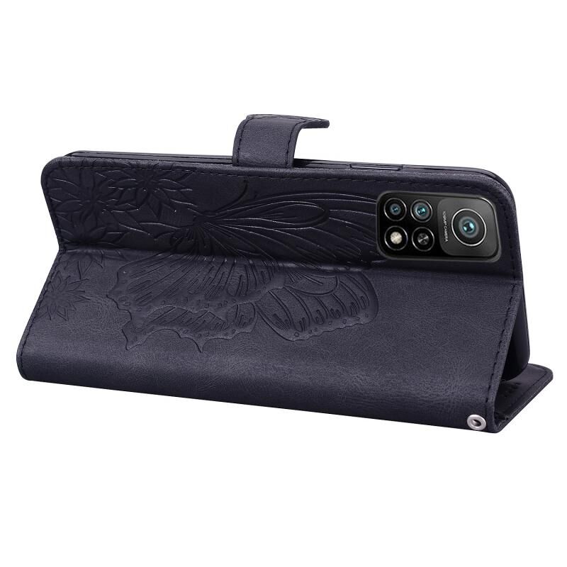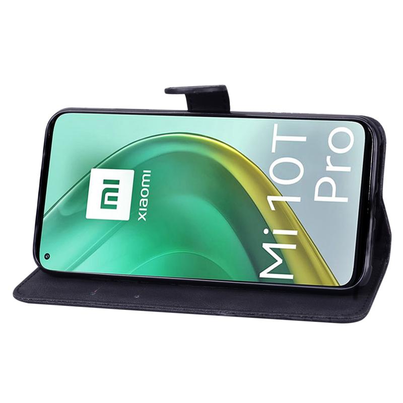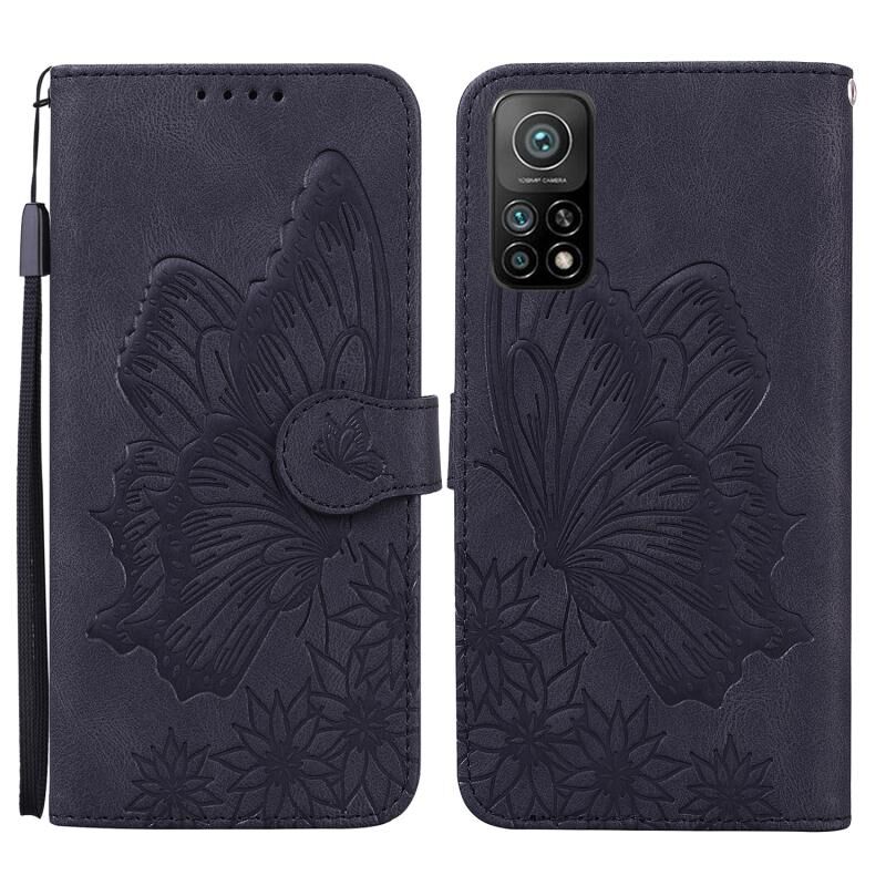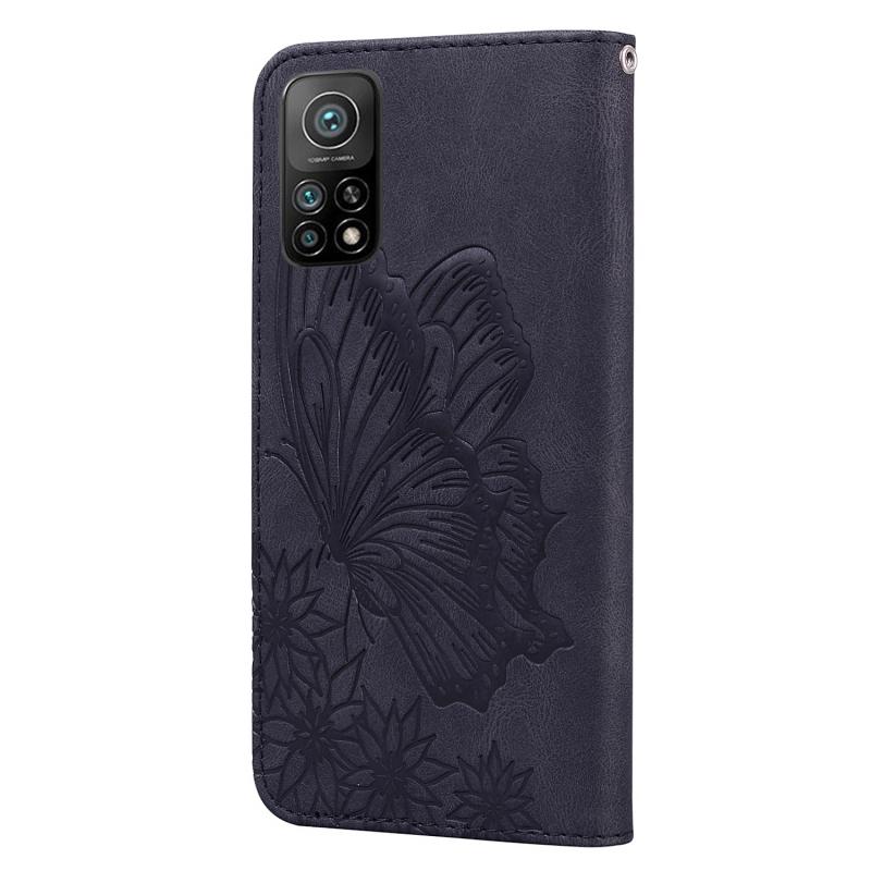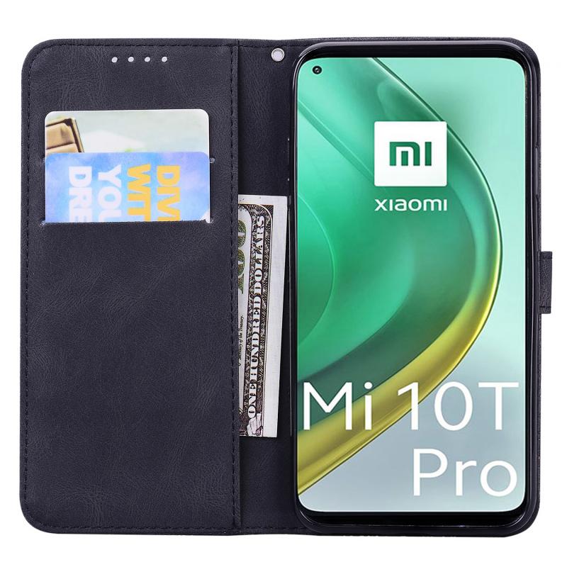 Για Xiaomi Mi 10T Pro 5G Θήκη Δέρματος Οριζόντιας Αναδίπλωσης με Υφή Retro, Embossing με Πεταλούδες, με Στήριξη & Θήκες Καρτών & Πορτοφόλι (Μαύρο)