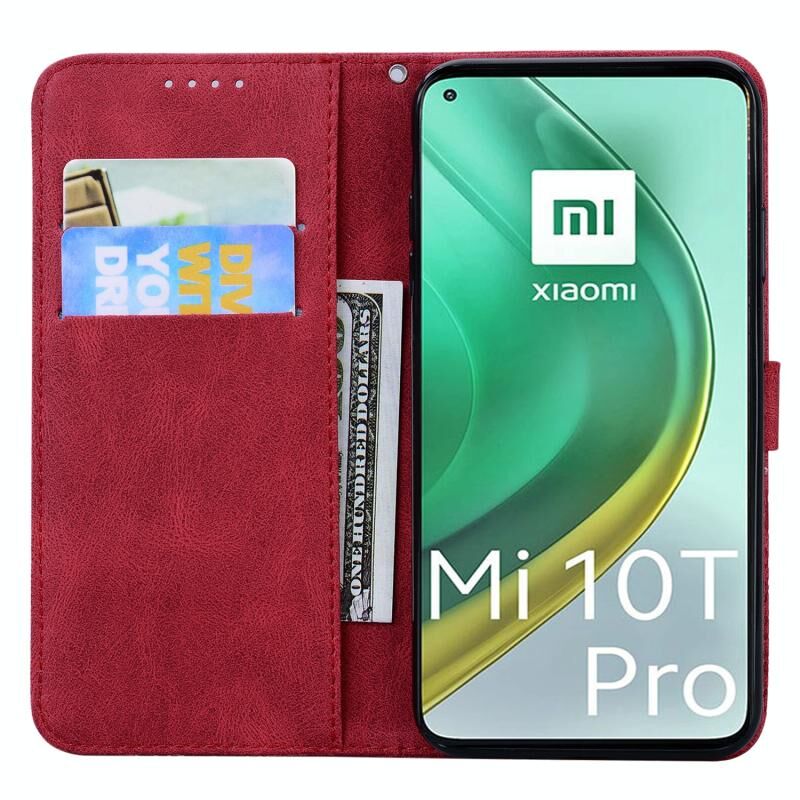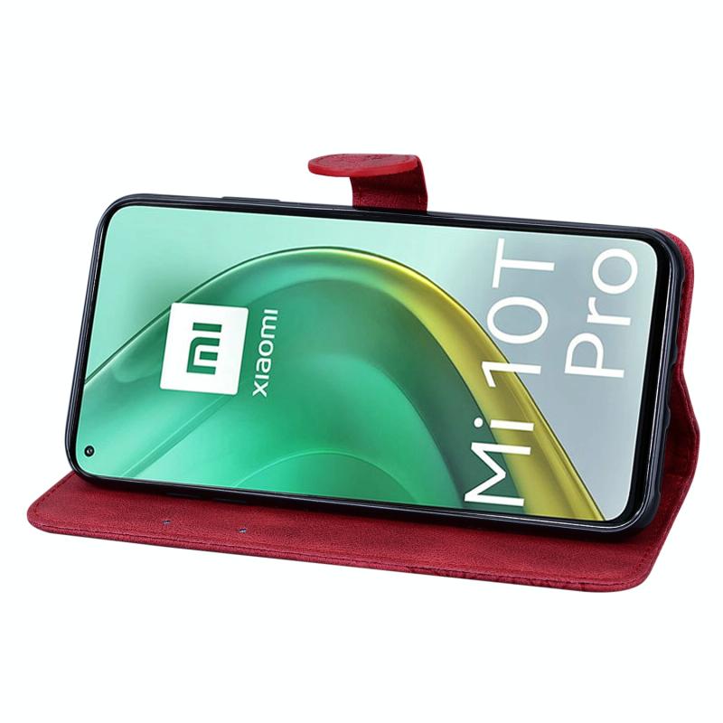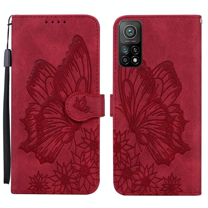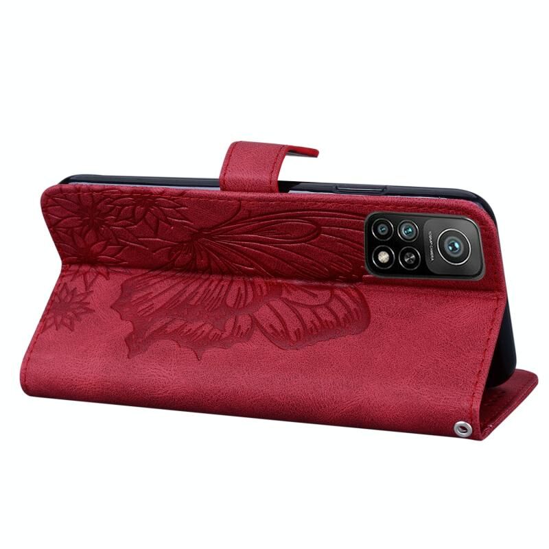 For Xiaomi Mi 10T Pro 5G Retro Skin Feel Butterflies Embossing Horizontal Flip Leather Case with Holder & Card Slots & Wallet(Red)
