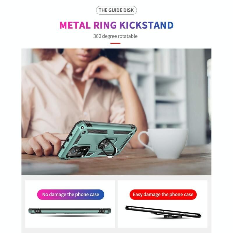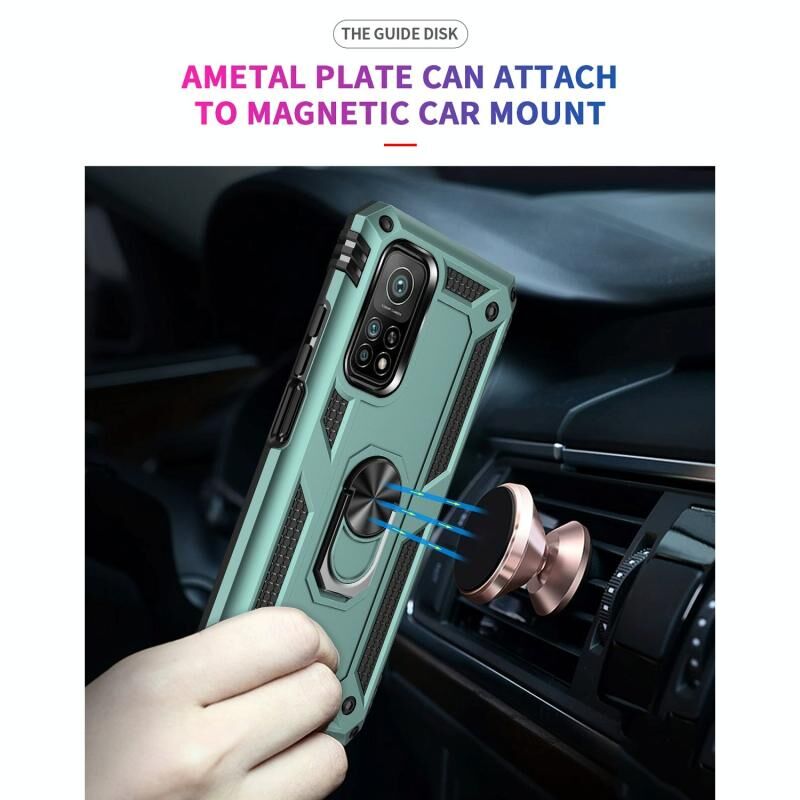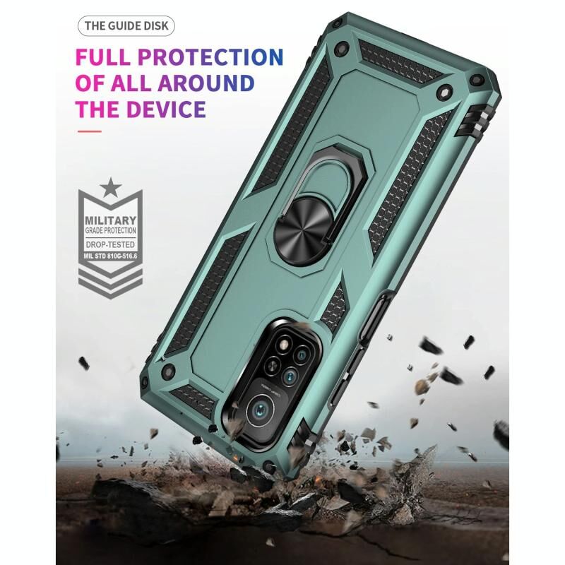 Για το Xiaomi Mi 10T Pro 5G Shockproof TPU + PC Προστατευτική θήκη με περιστρεφόμενη θήκη 360 μοιρών (σκούρο πράσινο)