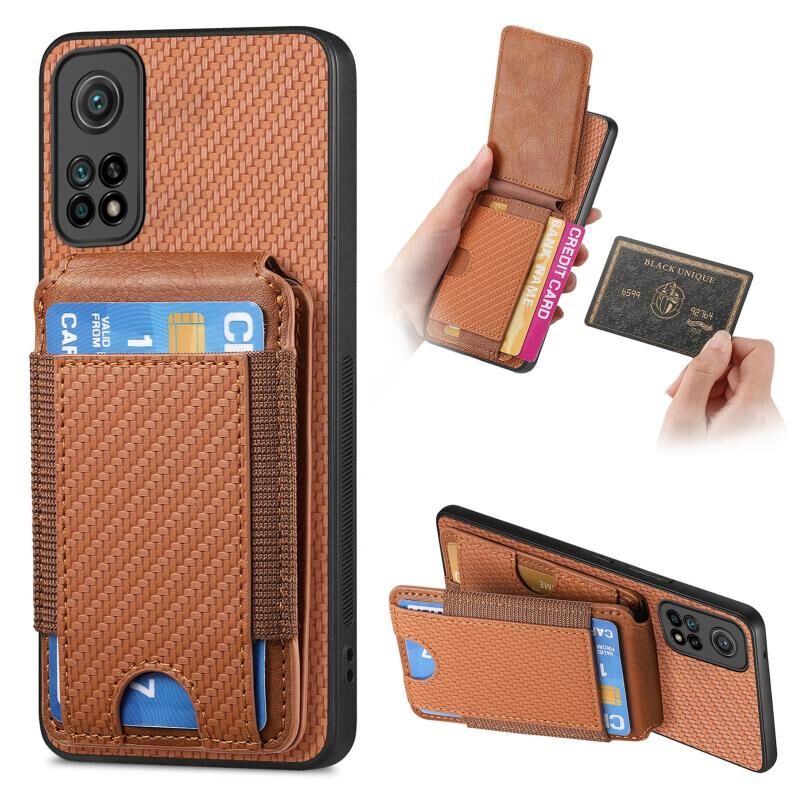 Για Xiaomi Mi 10T Pro Carbon Fiber Κάθετη Flip Wallet Stand υπόθεση τηλεφώνου (καφέ)