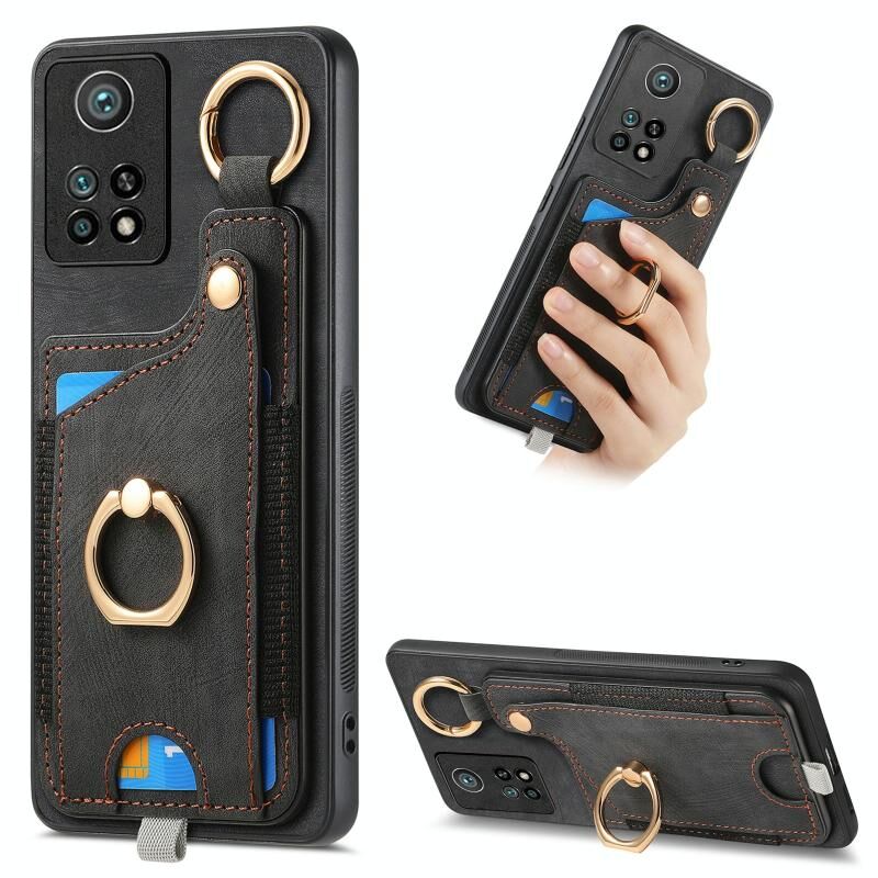 Για Xiaomi Mi 10T Pro Ρετρό δέρμα αίσθηση δαχτυλίδι κάρτα τσάντα υπόθεση τηλεφώνου με Hang Loop (μαύρο)