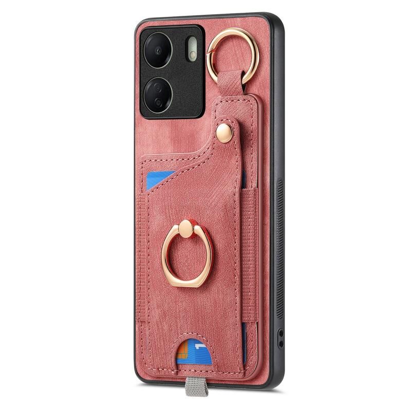 Για Xiaomi Mi 10T Pro Ρετρό δέρμα αίσθηση δαχτυλίδι κάρτα τσάντα υπόθεση τηλεφώνου με Hang Loop (ροζ)