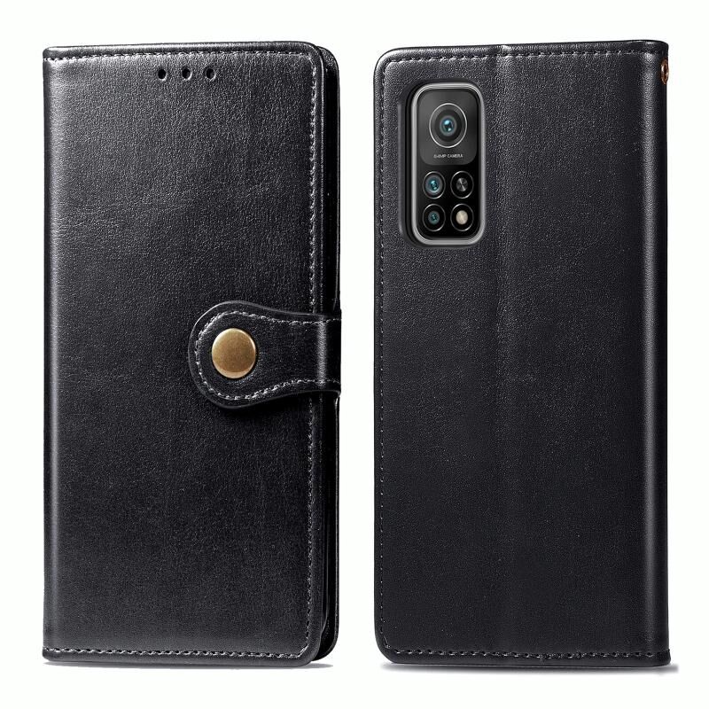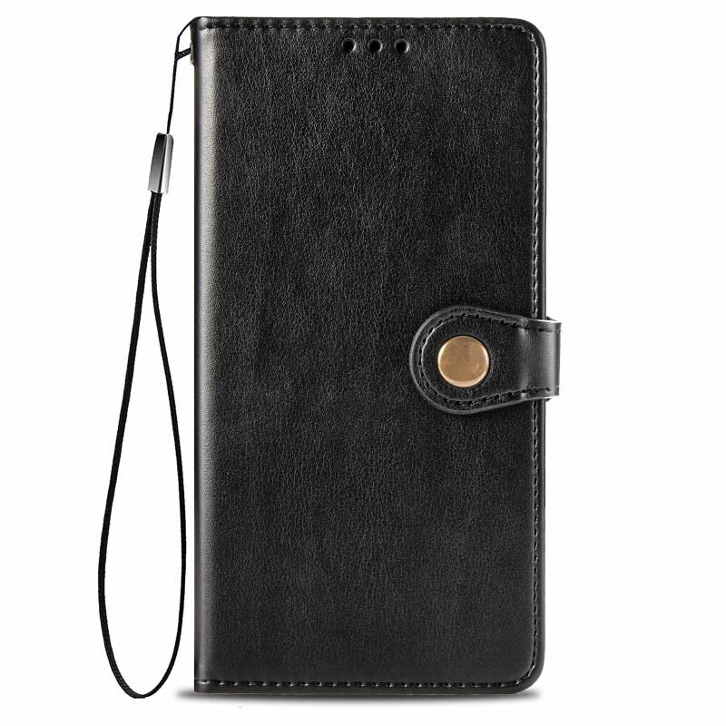 Για Xiaomi Mi 10T / Redmi K30S Ρετρό αμιγές χρώμα δέρμα αγκράφα τηλέφωνο υπόθεση με κορδόνι & πλαίσιο φωτογραφιών & υποδοχή κάρτας & πορτοφόλι & Stand λειτουργία (μαύρο)