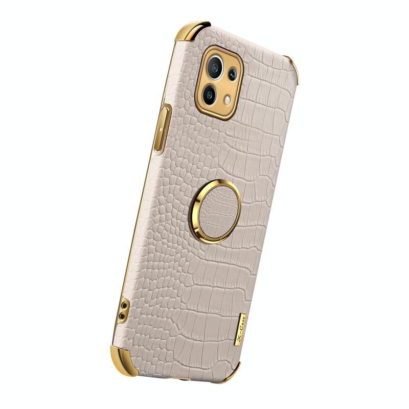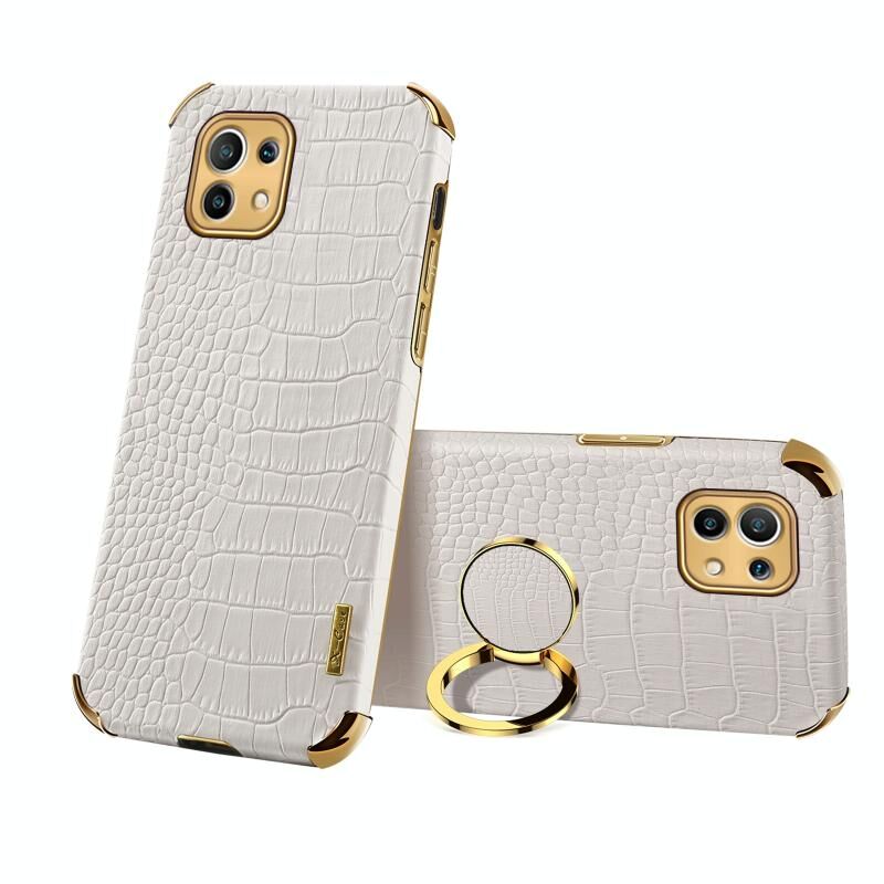 Για Xiaomi Mi 11 6D Electroplated TPU Crocodile Pattern Magnetic Leather Case with Ring Holder (White)