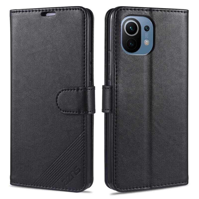 Για Xiaomi Mi 11 AZNS Μαγνητικό μοσχάρι υφή οριζόντια Flip δερμάτινη θήκη με υποδοχές για κάρτες & κάτοχος & πορτοφόλι (Μαύρο) (AZNS)