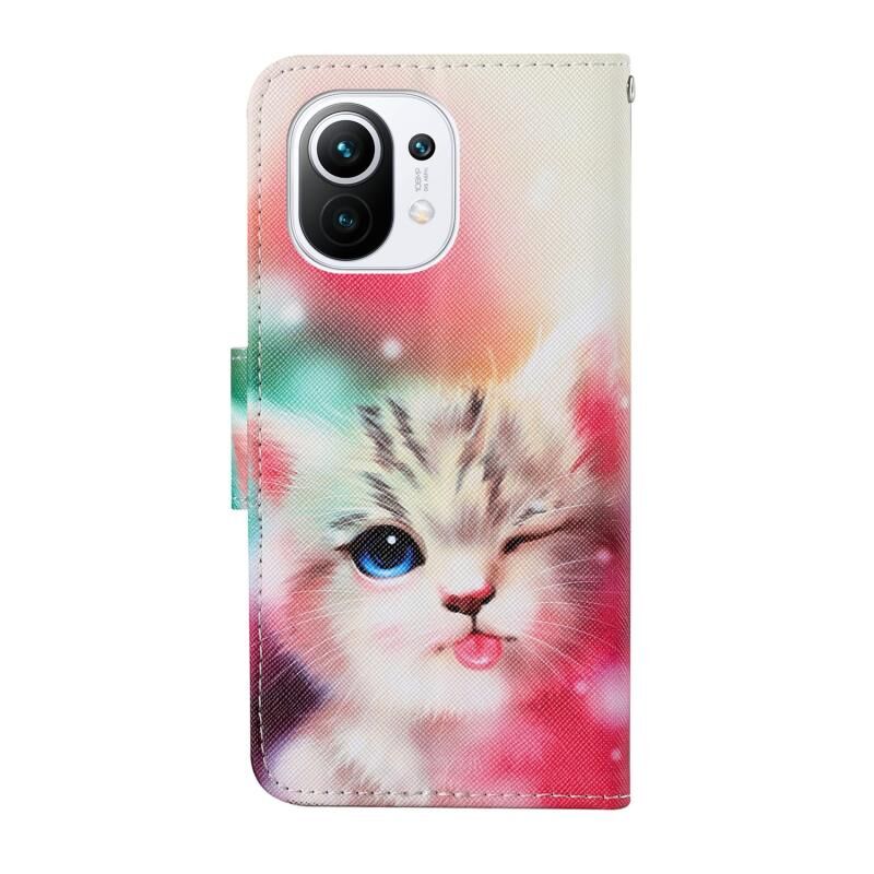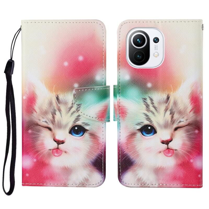 Θήκη δέρματος οριζόντιας αναδίπλωσης με σχέδιο πολύχρωμης ζωγραφικής για Xiaomi Mi 11 με βάση στήριξης & υποδοχές καρτών & πορτοφόλι & κορδόνι (Κόκκινο)
