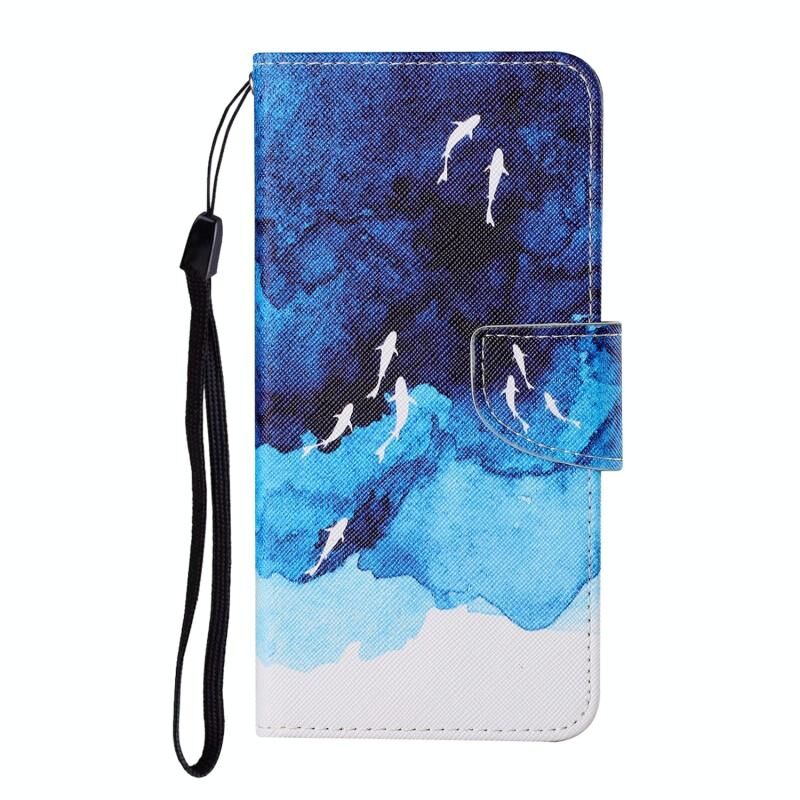Θήκη δέρματος οριζόντιας αναδίπλωσης με σχέδιο πολύχρωμης ζωγραφικής για Xiaomi Mi 11 με βάση στήριξης & υποδοχές καρτών & πορτοφόλι & κορδόνι (Υδάτινα Ψάρια)