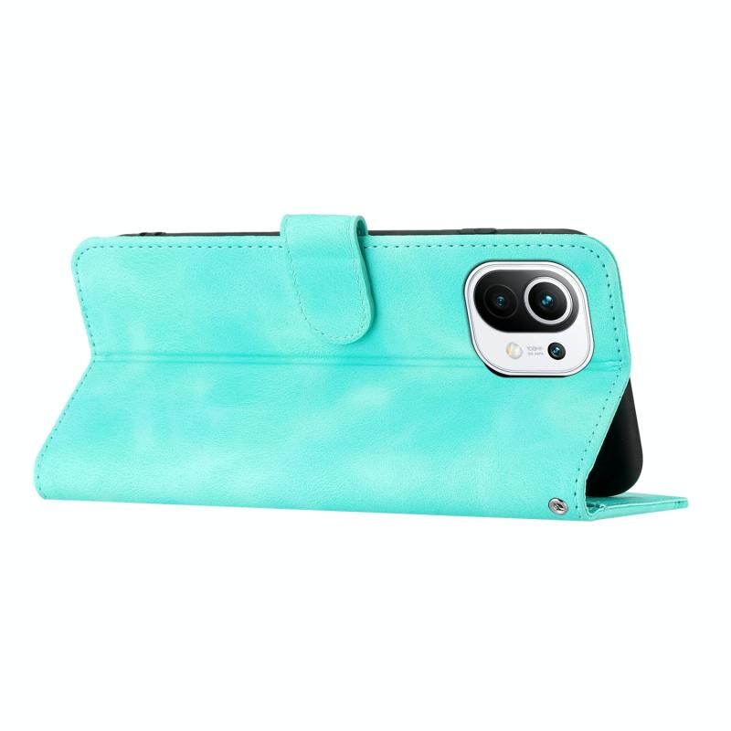 Για Xiaomi Mi 11 καρδιά μοτίβο δέρμα δέρμα αίσθηση υπόθεση τηλεφώνου (γαλάζιο)