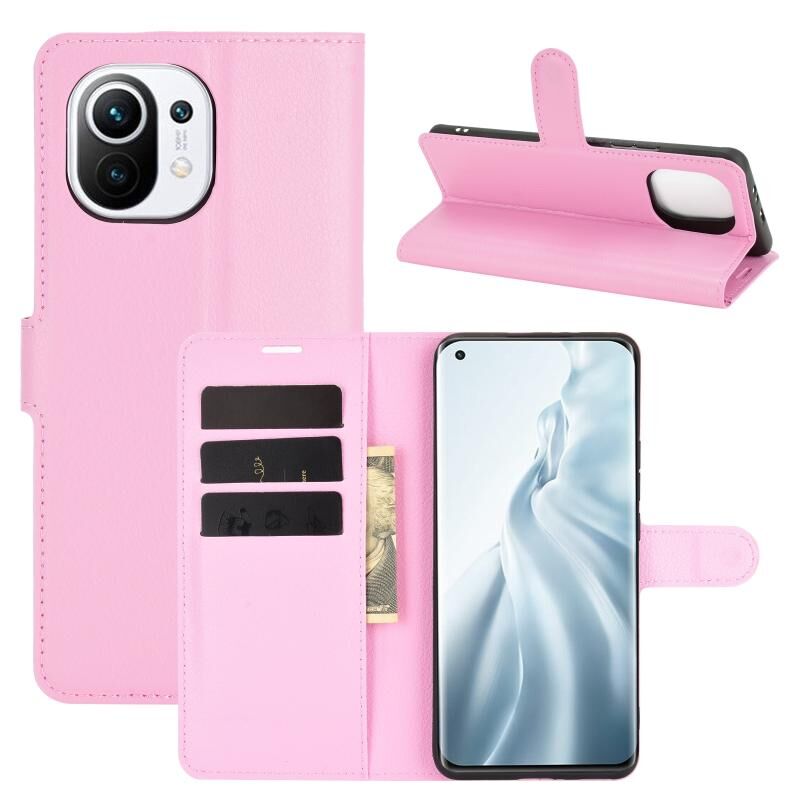 Για Xiaomi Mi 11 Litchi Υφή Οριζόντια Flip Προστατευτική θήκη με θήκη & υποδοχές για κάρτες & πορτοφόλι (ρόζ)