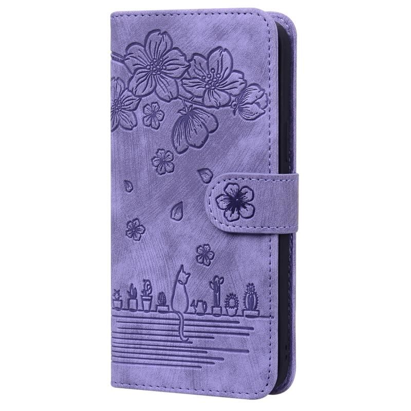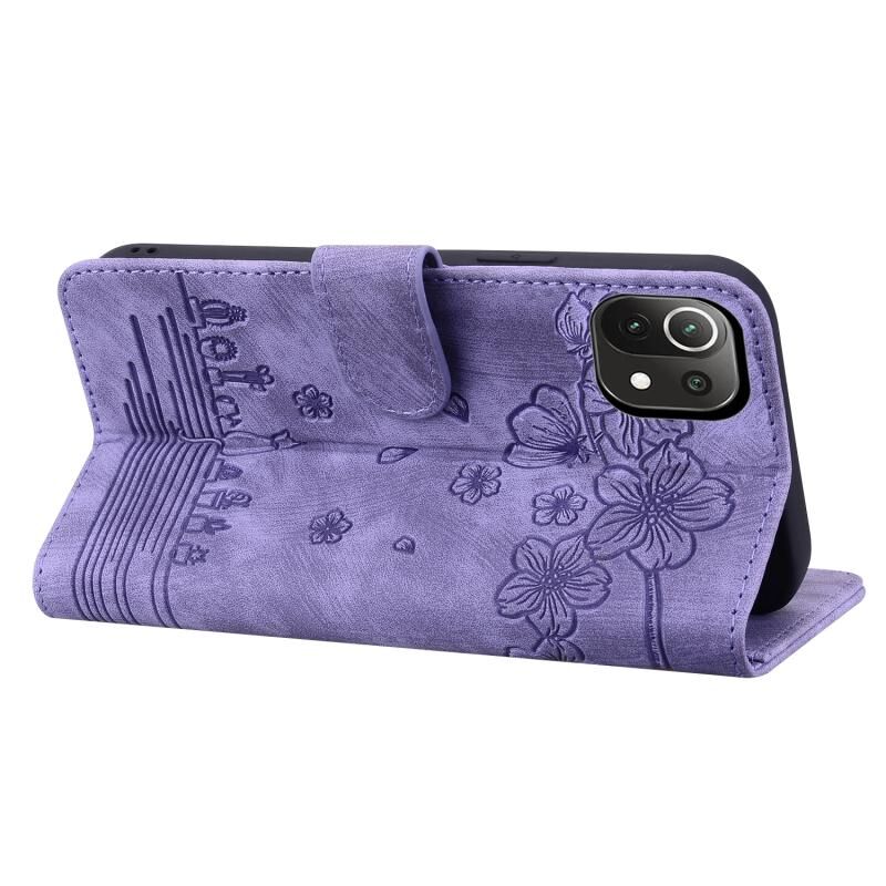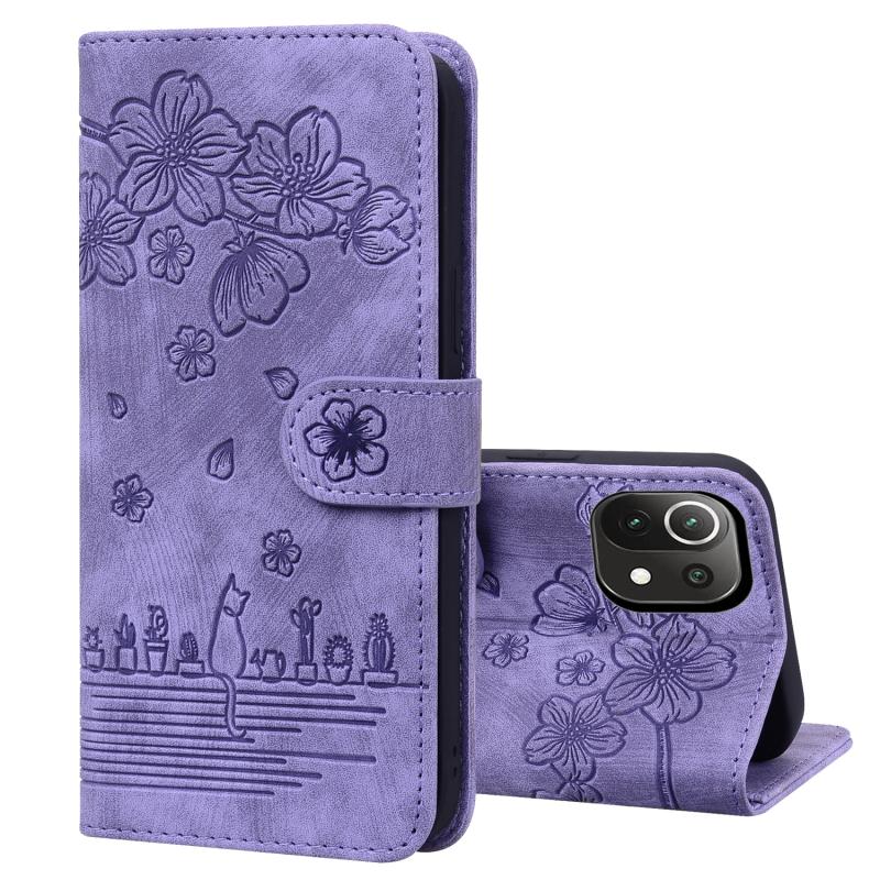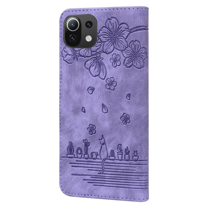 Θήκη δερμάτινη με σχέδιο Sakura Cat για Xiaomi Mi 11 Lite 4G / 5G (Μωβ)