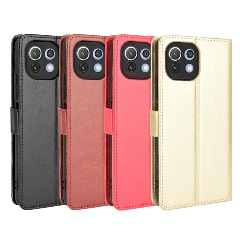 Για Xiaomi Mi 11 Lite 4G Retro Crazy Horse Υφή οριζόντια Flip δερμάτινη θήκη με θήκη & υποδοχές καρτών & πλαίσιο φωτογραφιών (Καφέ)