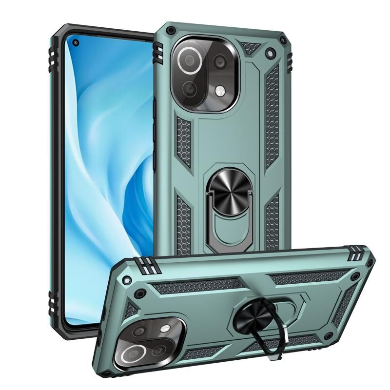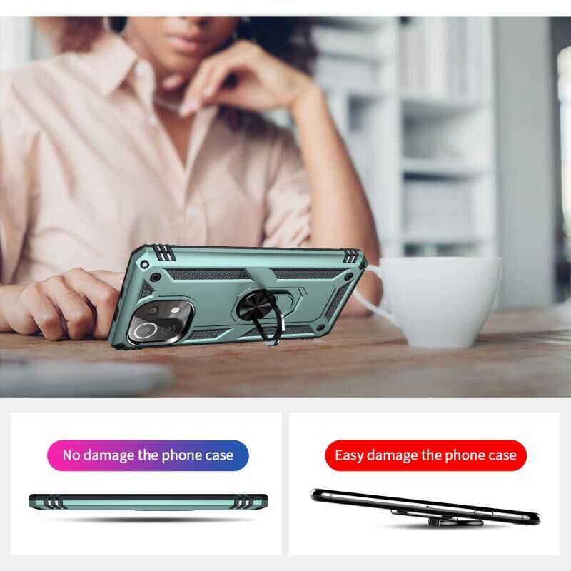 Για Xiaomi Mi 11 Lite 5G Αδιάβροχη θήκη TPU + PC Προστατευτική θήκη με περιστρεφόμενη θήκη 360 μοιρών (σκούρο πράσινο)