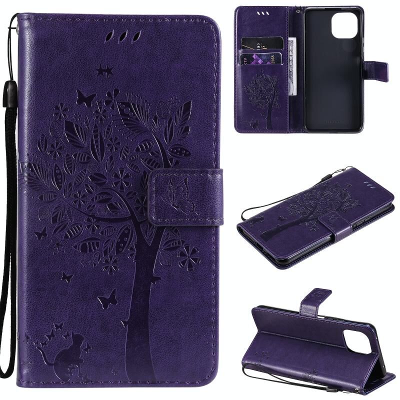 Για Xiaomi Mi 11 Lite 5G Θήκη Δερμάτινη PU με Οριζόντιο Άνοιγμα, με σχέδιο Δέντρου & Γάτας, με εκτύπωση υπό πίεση, με βάση στήριξης & Θήκες Καρτών & Πορτοφόλι & Λουρί (Πράσινο) (Diaobaolee)