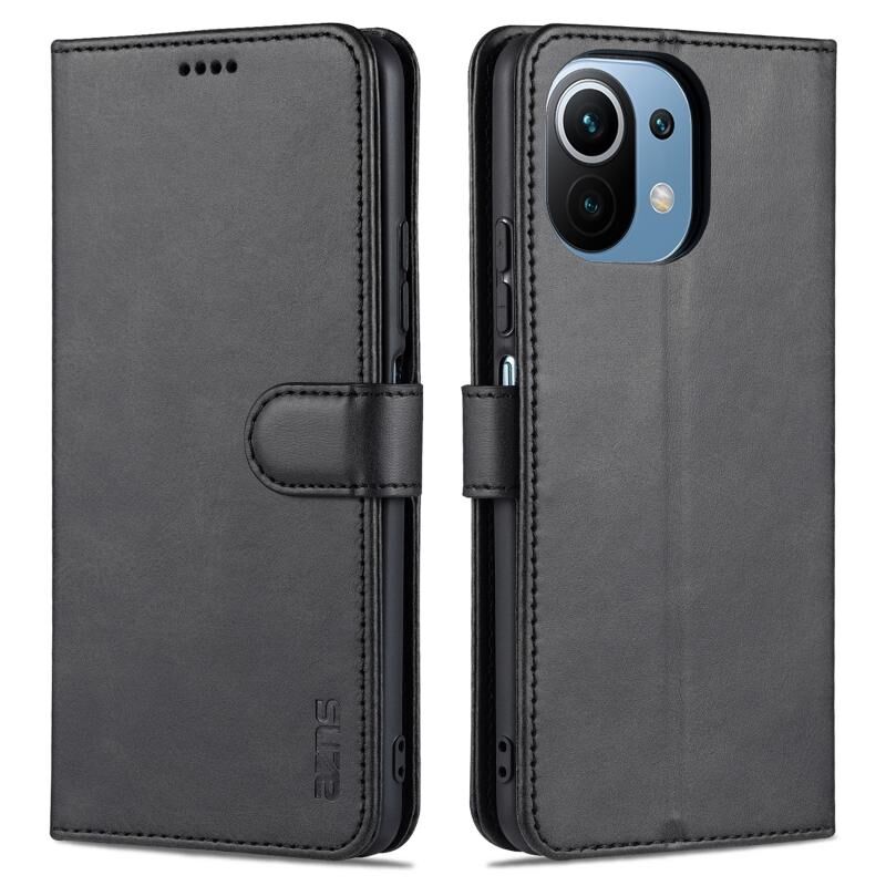 Για Xiaomi Mi 11 Lite AZNS Skin Feel Calf Texture Οριζόντια Flip δερμάτινη θήκη με υποδοχές για κάρτες & κάτοχος & πορτοφόλι (Μαύρο) (AZNS)